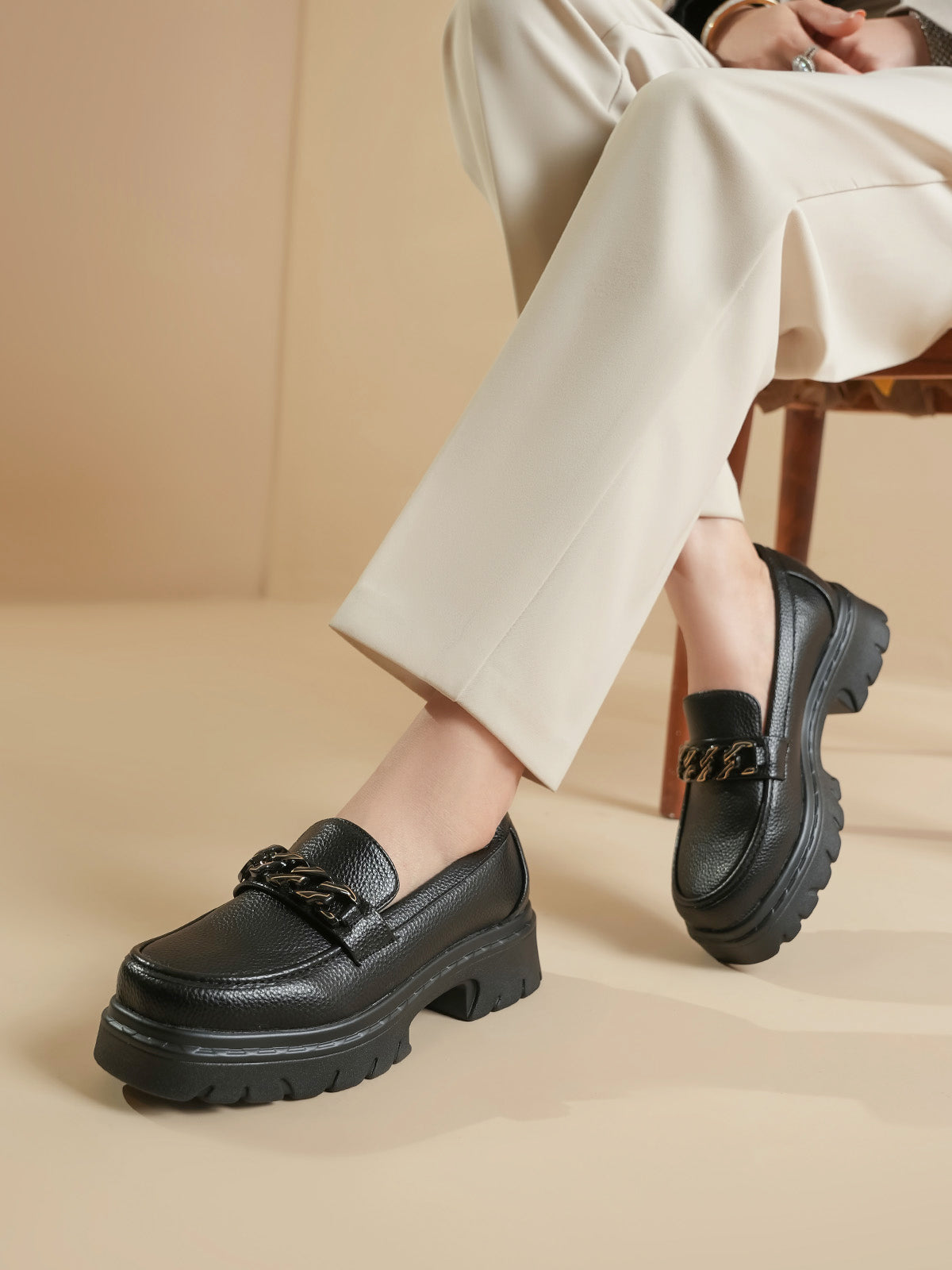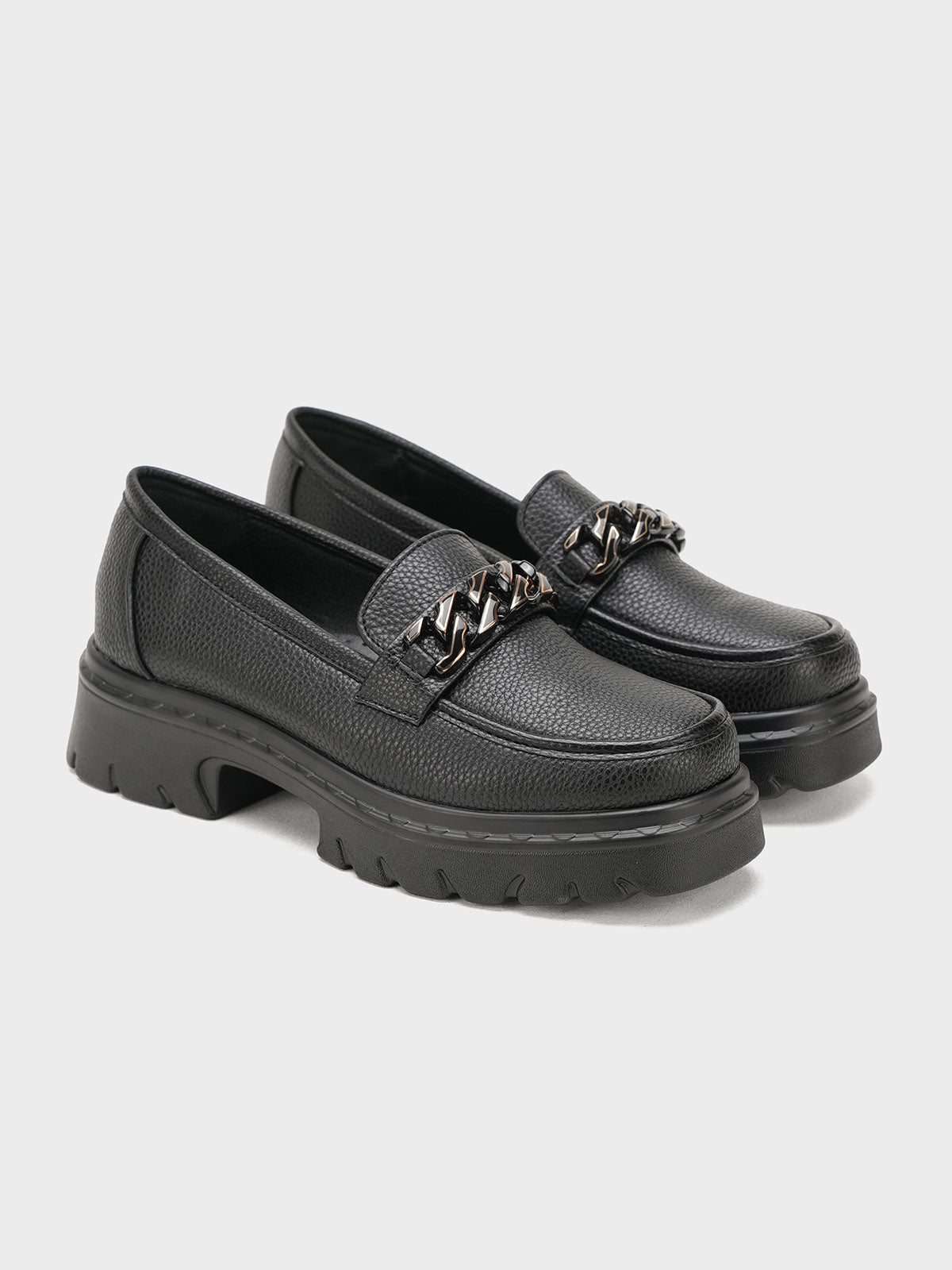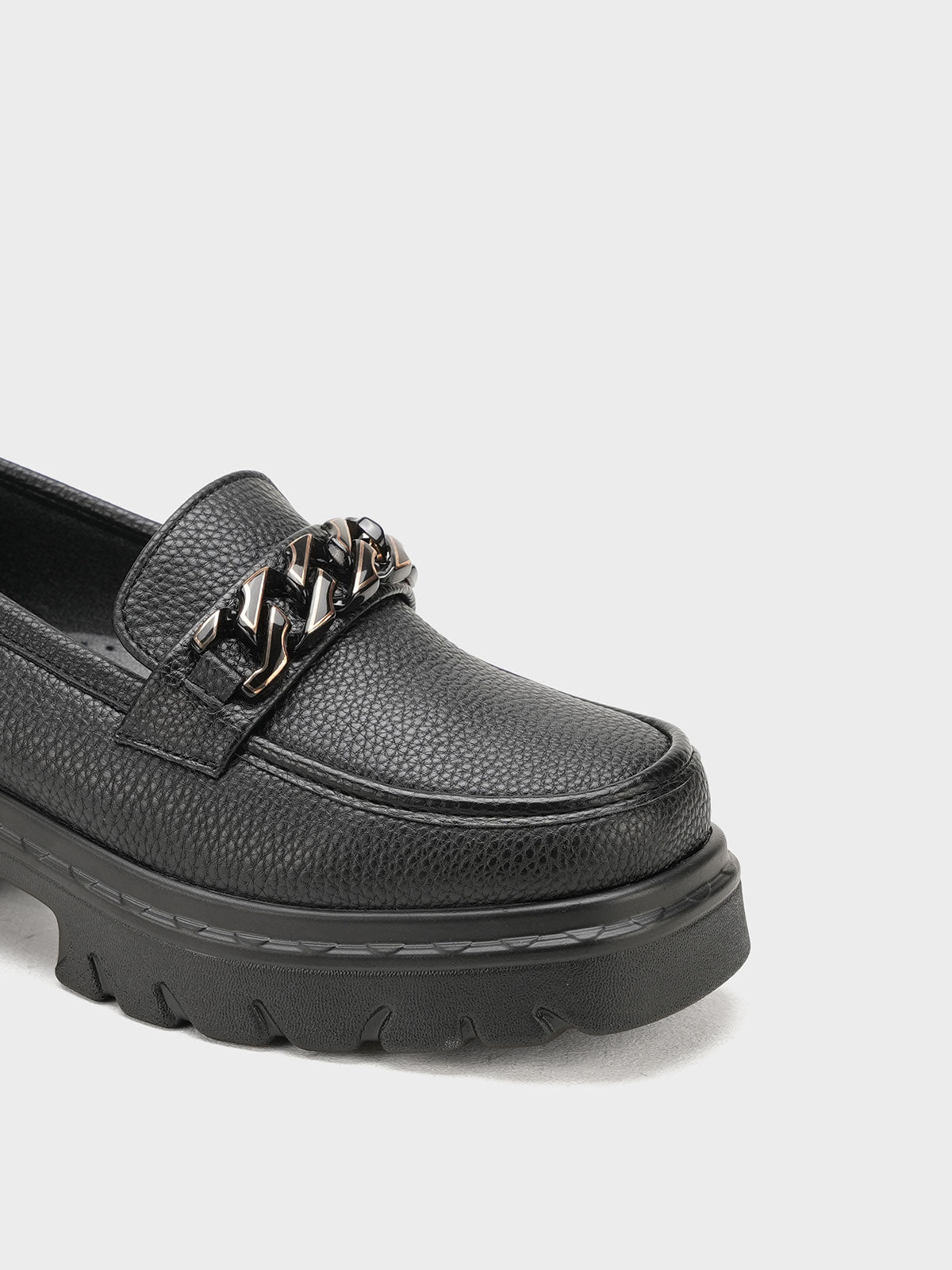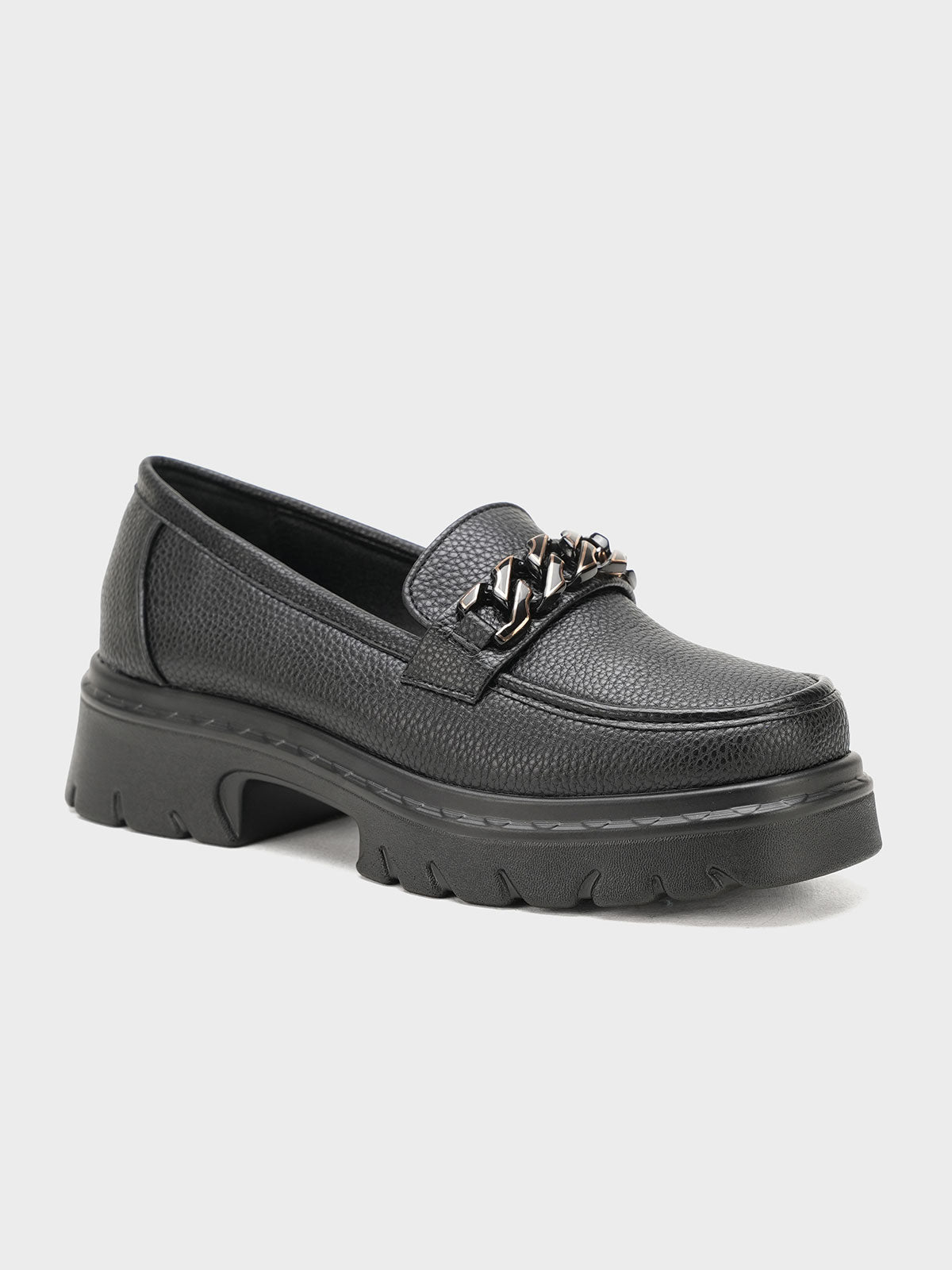 Unze London women loafers with soft finish and chain detail—perfect blend of comfort and style.