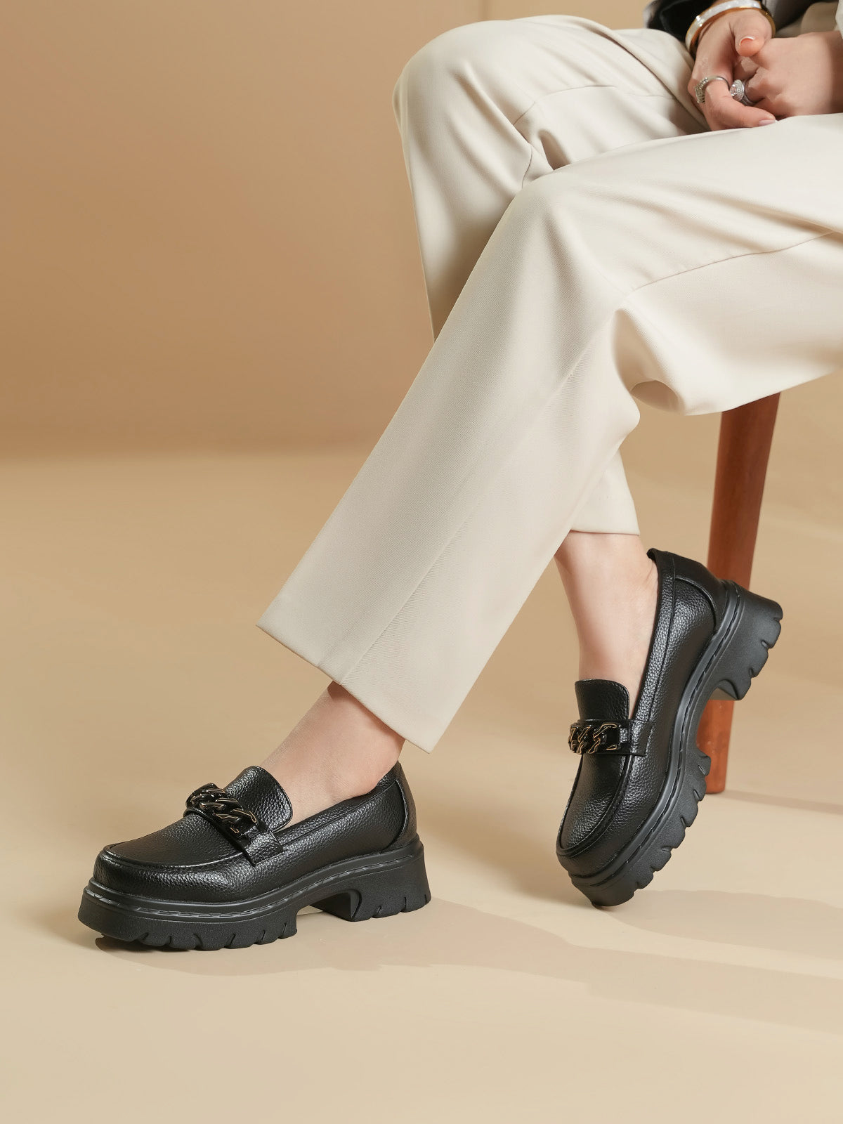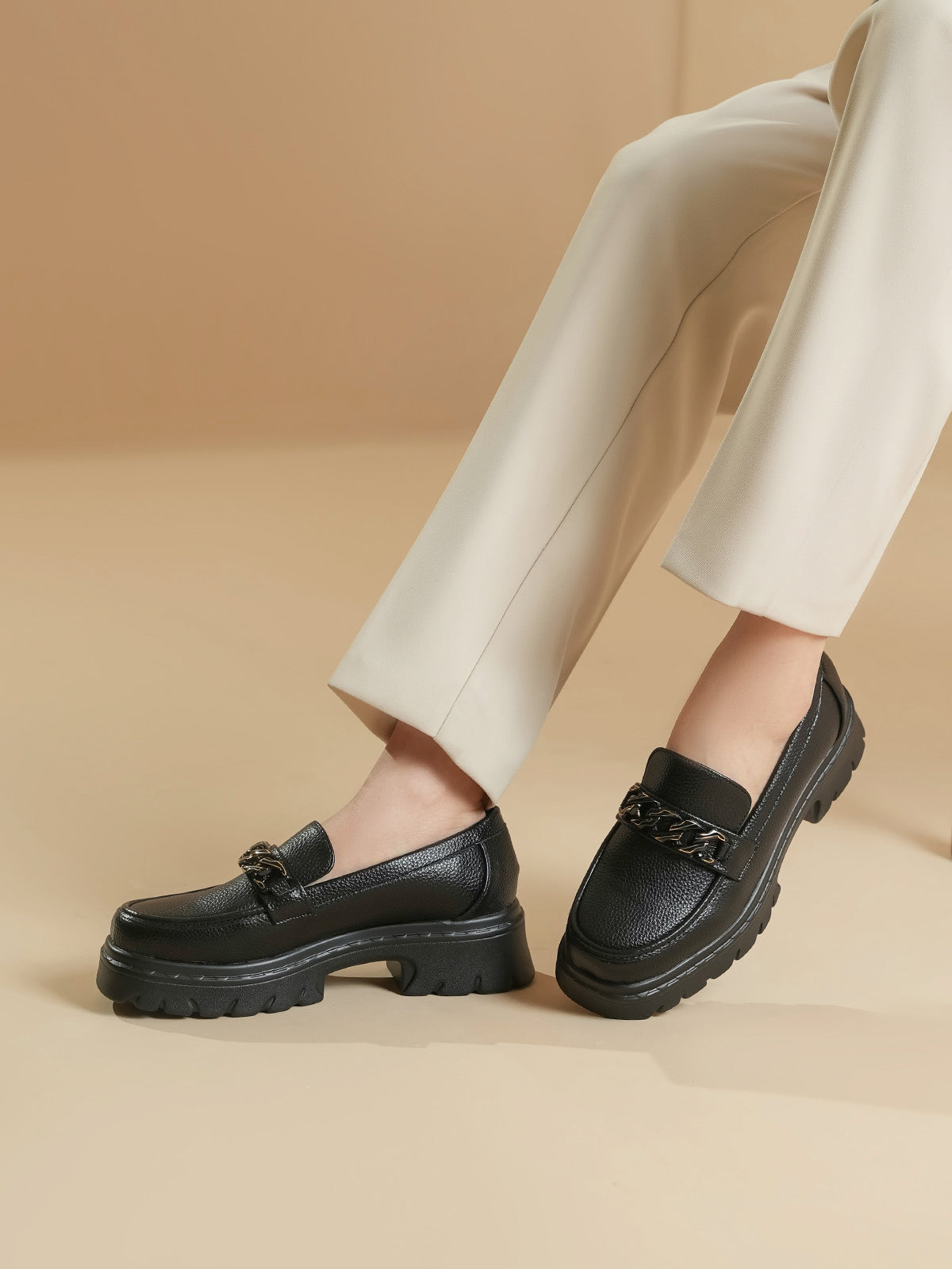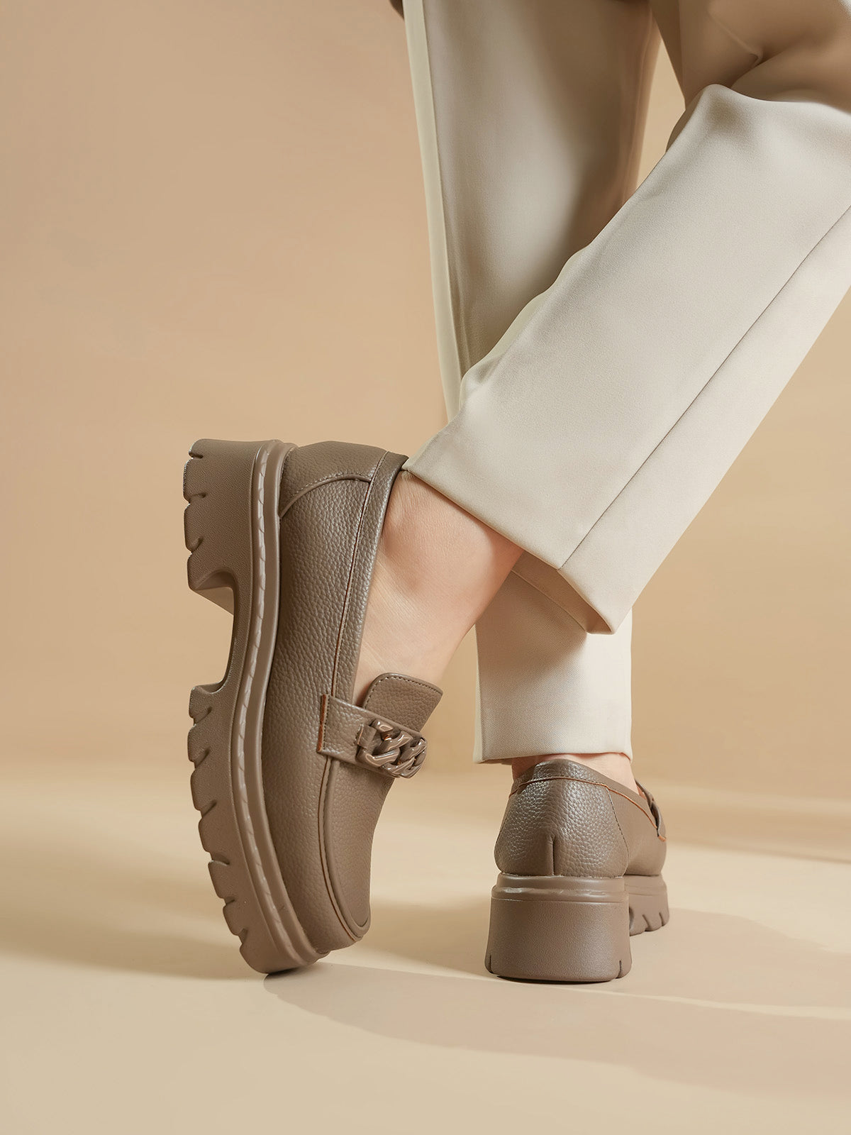 Unze London women loafers with soft finish and chain detail—perfect blend of comfort and style.