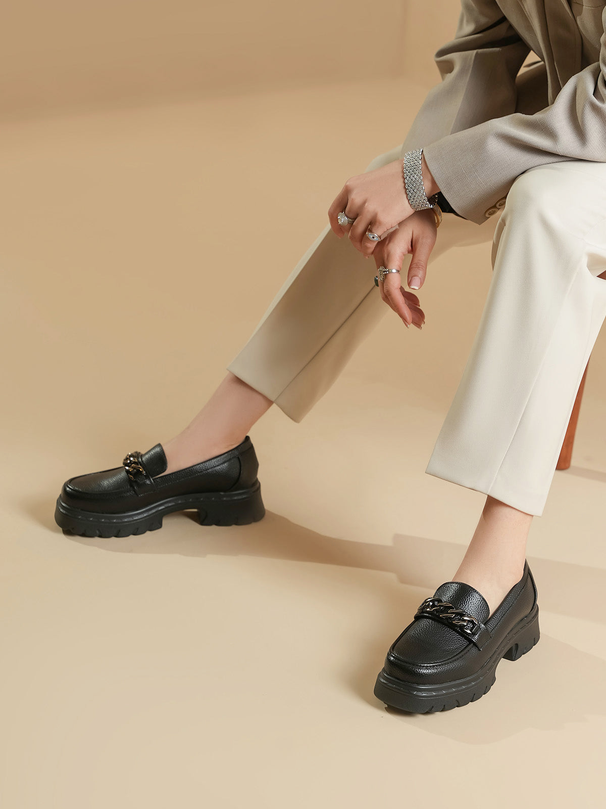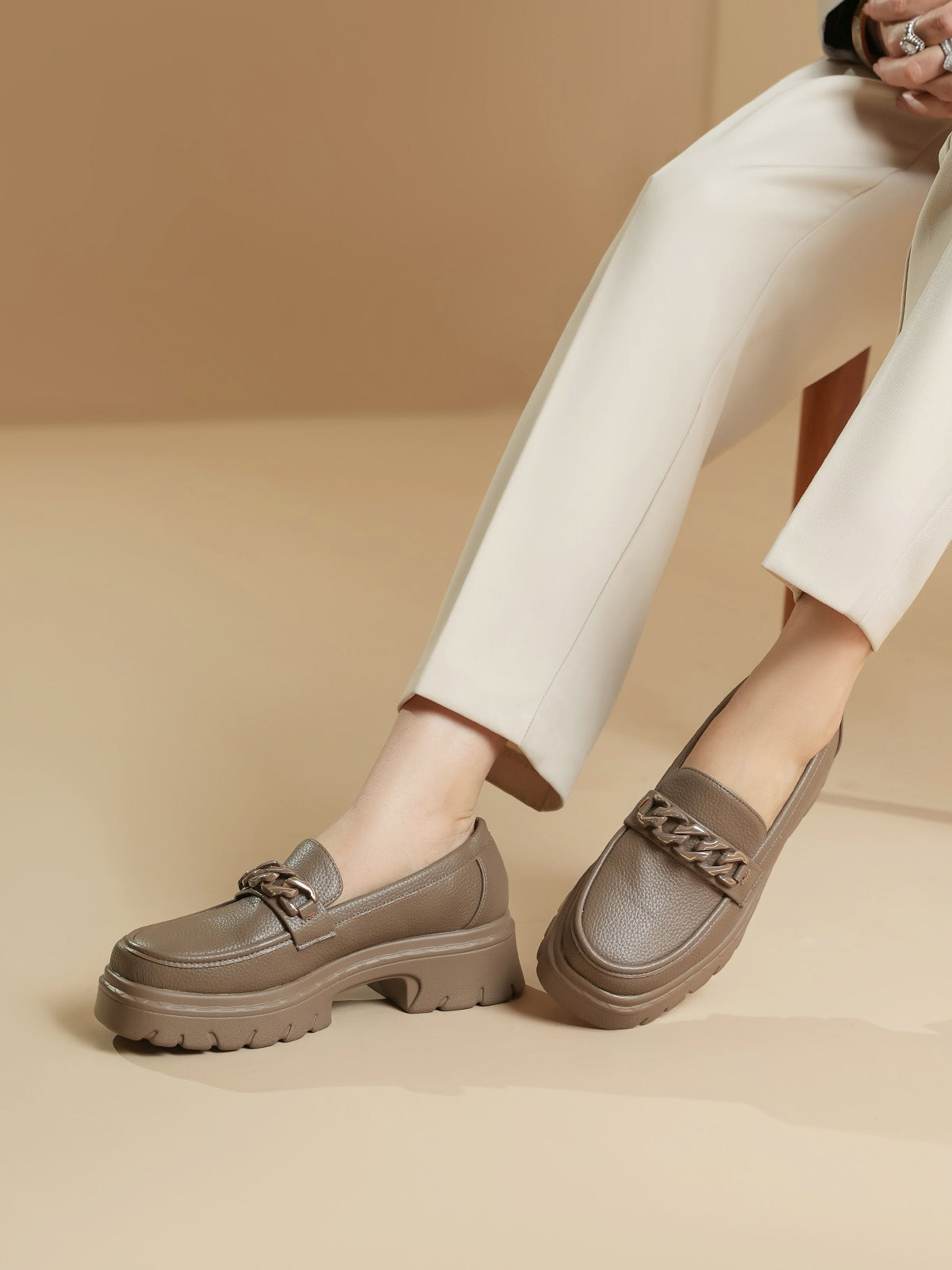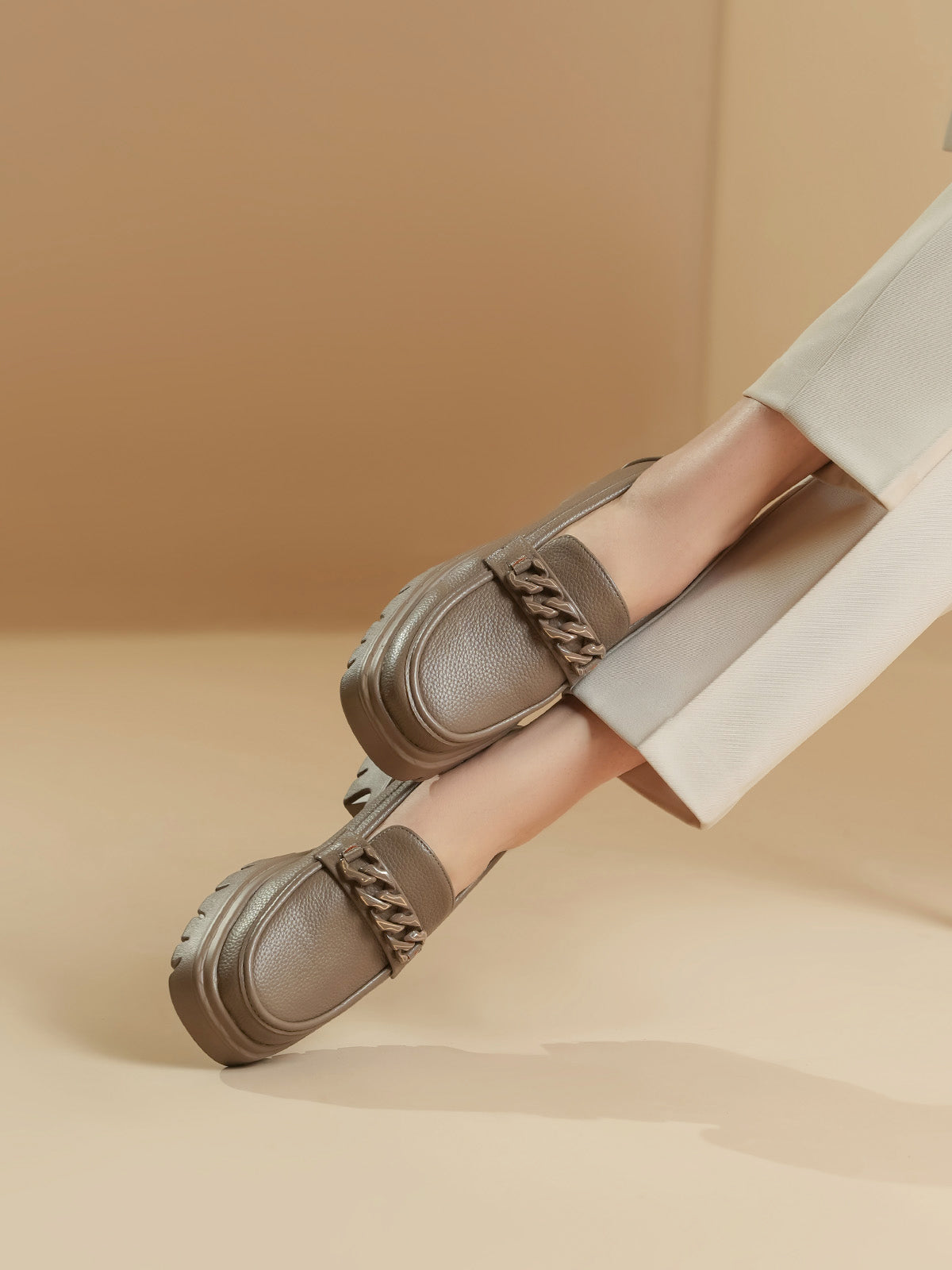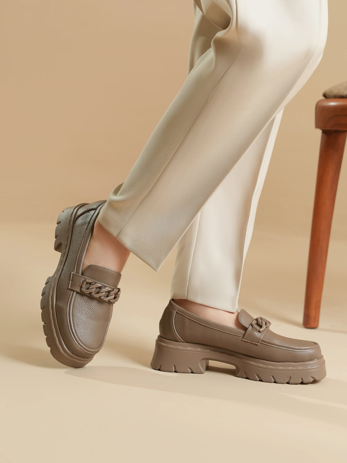 Unze London women loafers with soft finish and chain detail—perfect blend of comfort and style.
