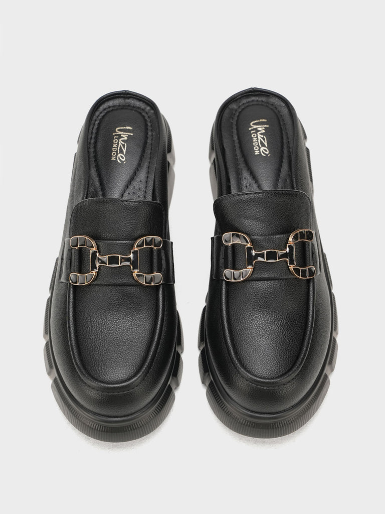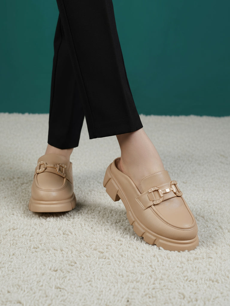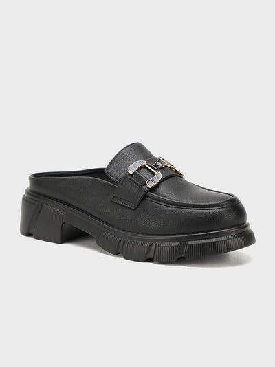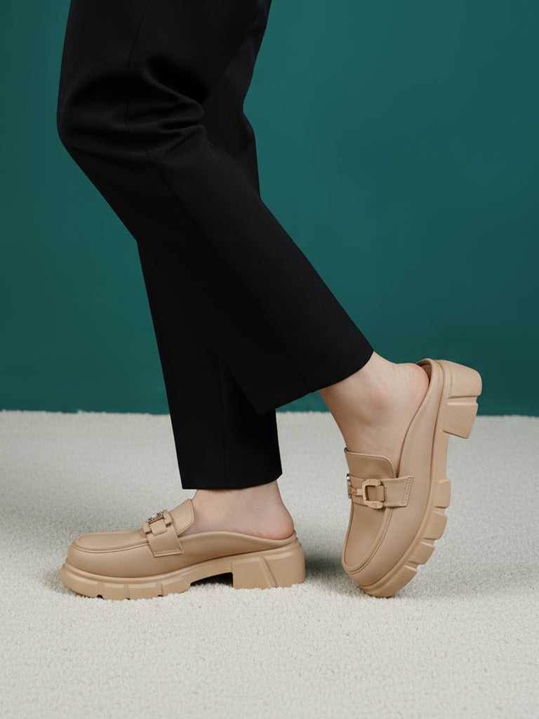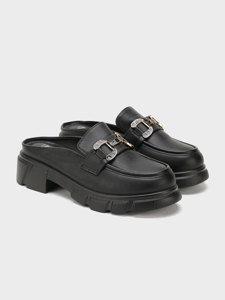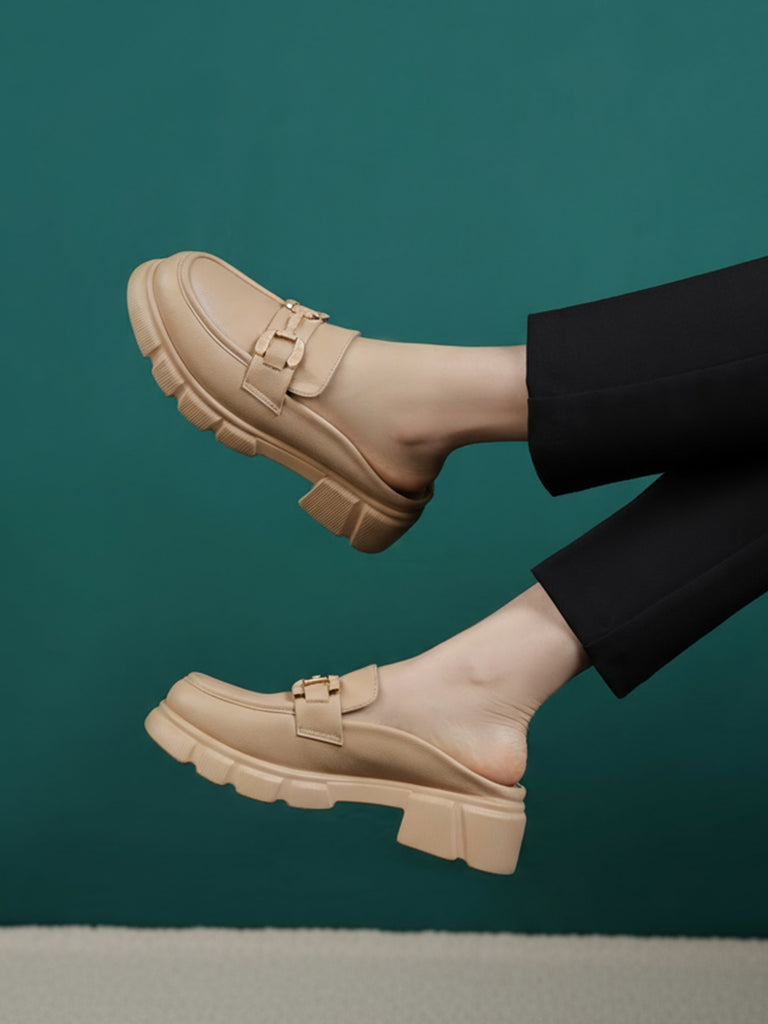 Add a touch of elegance to your everyday look with these open-back loafers featuring a fancy front buckle. Designed for easy slip-on wear, these stylish loafers combine comfort with a fashionable edge.