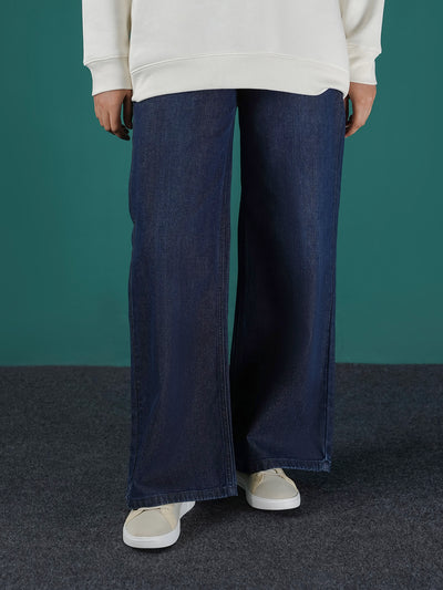 These denim plazo fit jeans offer a relaxed and stylish look with their wide-leg design. Perfect for a modern and breezy silhouette, they provide all-day comfort and effortless style. Ideal for casual outings or dressing up with your favorite top.