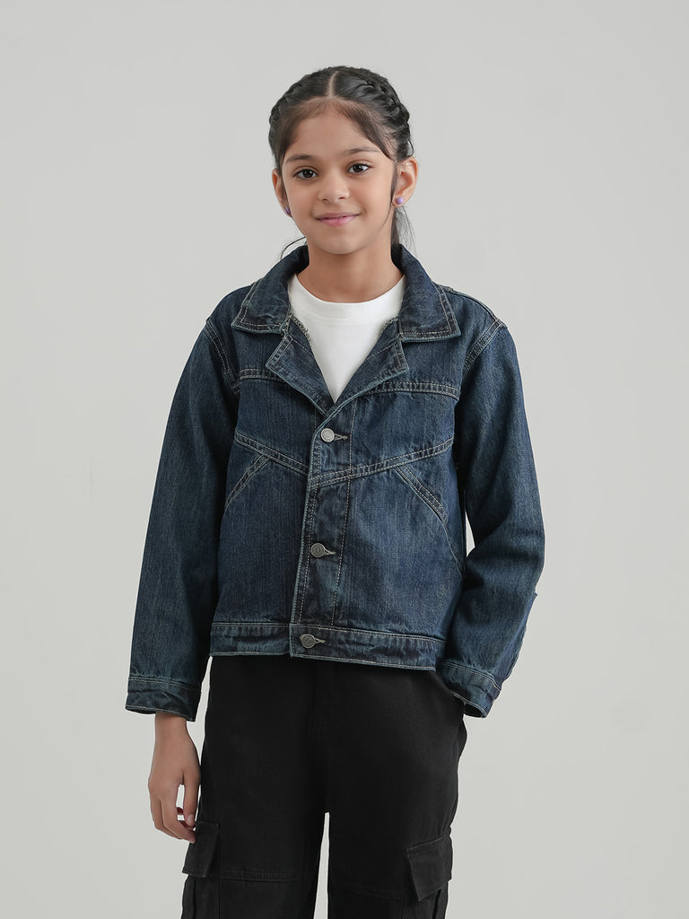 Add fun and flair to your girl's wardrobe with this new kids' cropped denim jacket! Featuring playful fringes on the front and a trendy cropped fit, this jacket is perfect for fashion-loving young ones. Ideal for casual outings and stylish everyday wear!