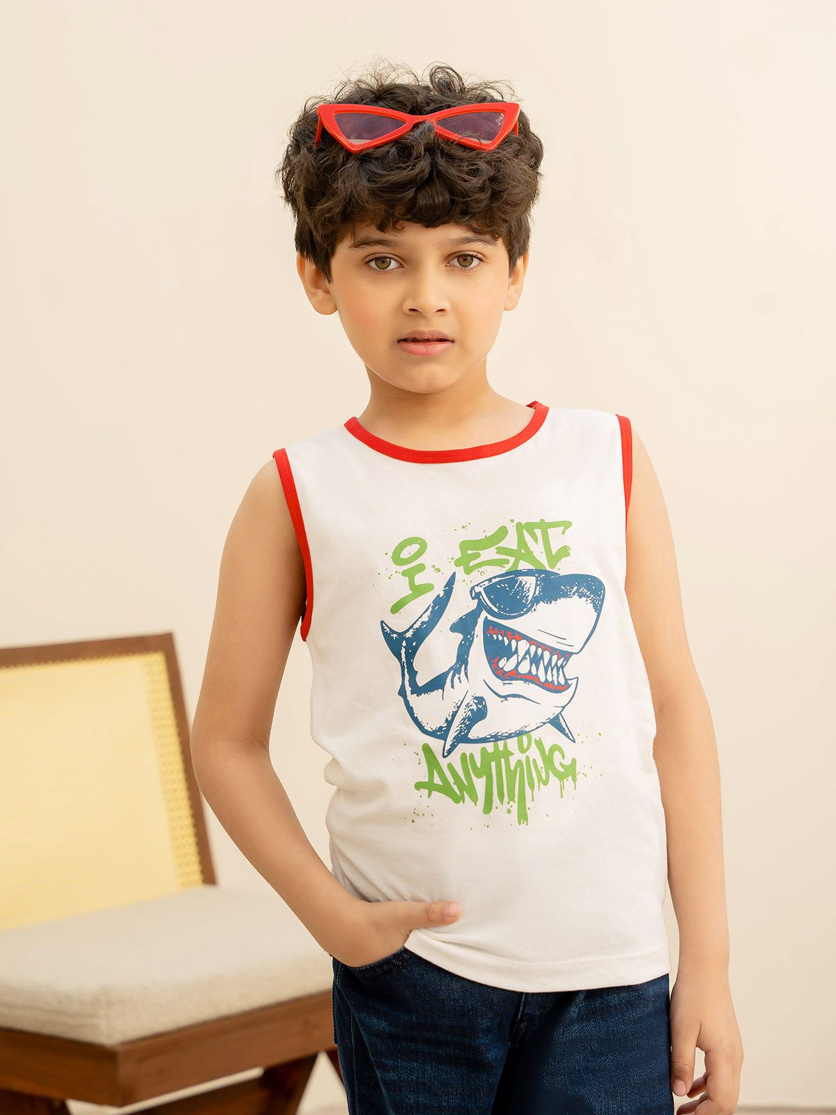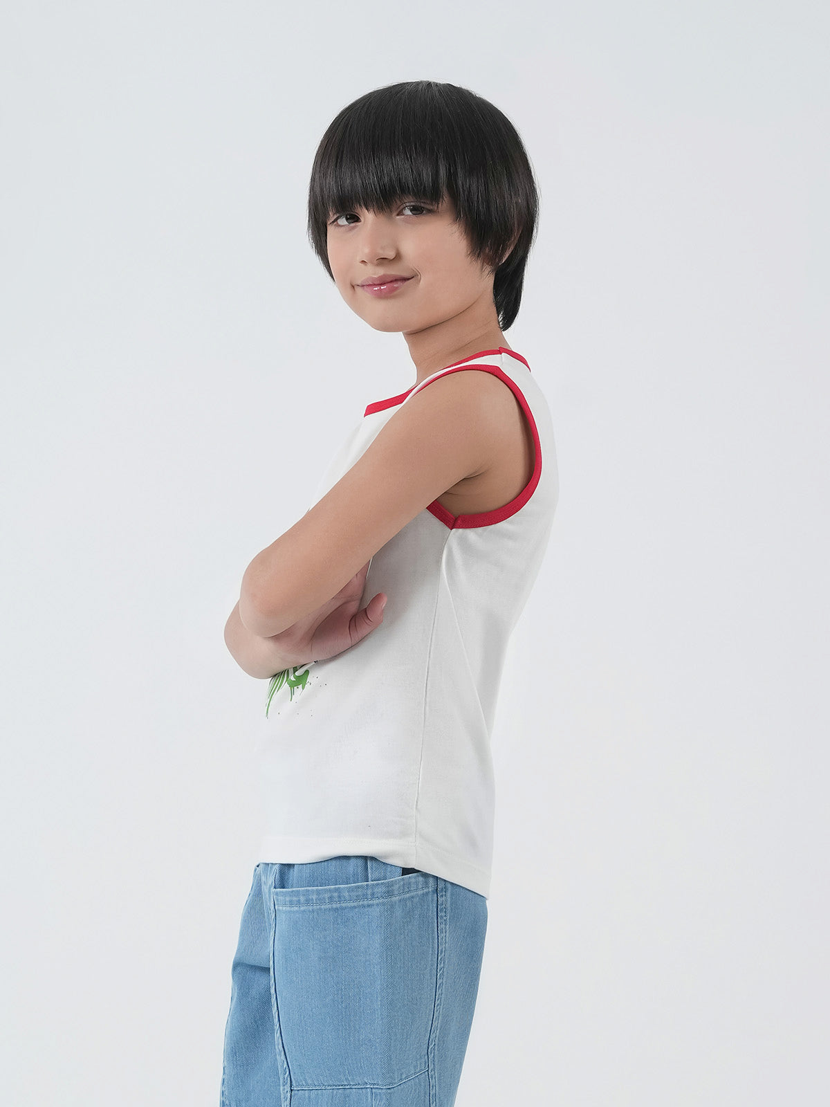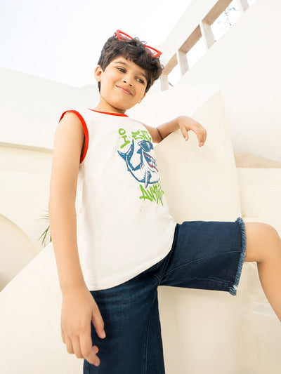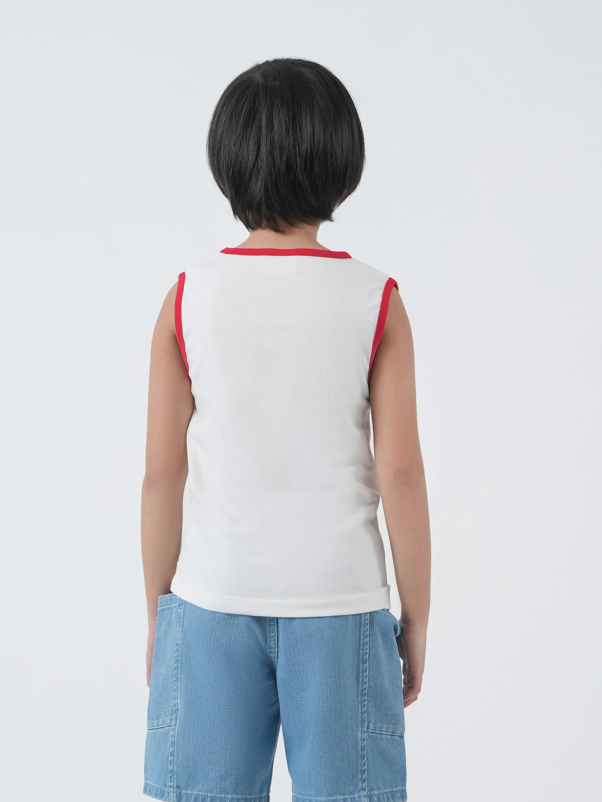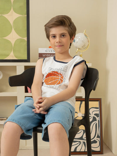 This kids boys tank top is crafted from soft CVC jersey fabric, ensuring comfort and breathability for all-day wear. Featuring a basic design with printed detailing, it adds a fun and stylish touch.