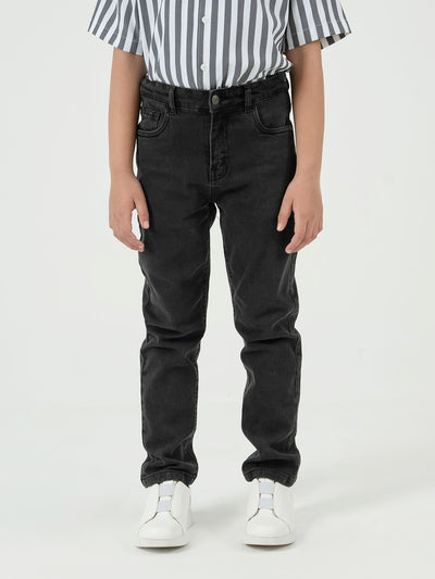 Kids boys denim jeans designed in a slim fit for a smart and modern look. Made from durable denim fabric, these jeans offer all-day comfort and long-lasting wear. The solid design makes them easy to style with t-shirts, shirts, or hoodies.