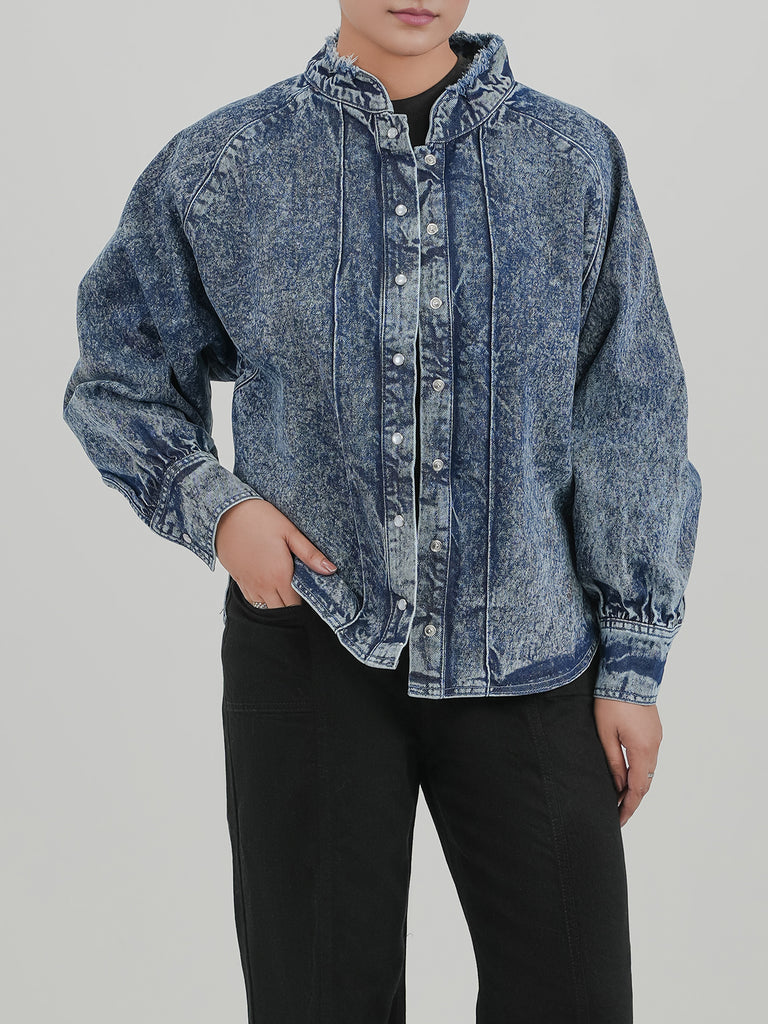 This women's basic denim jacket is a timeless wardrobe essential. With its classic design and comfortable fit, it’s perfect for layering over any outfit. Made from durable denim, it adds a casual and stylish touch to your everyday look.