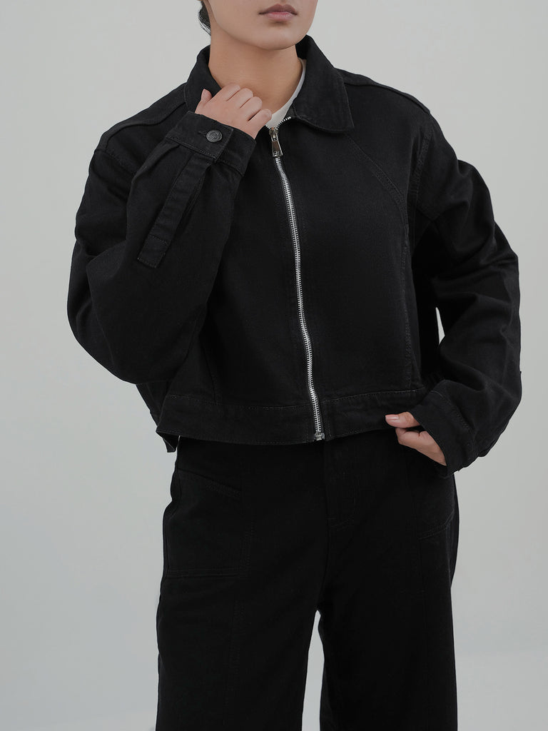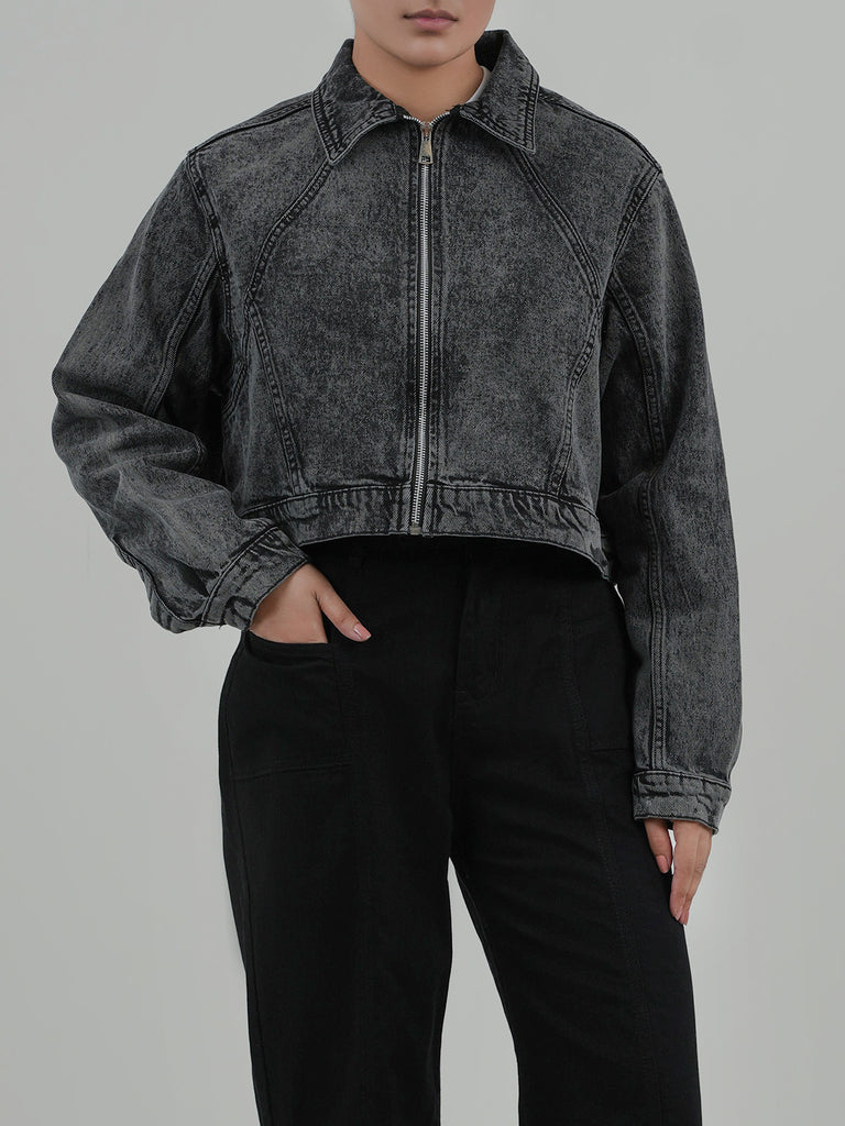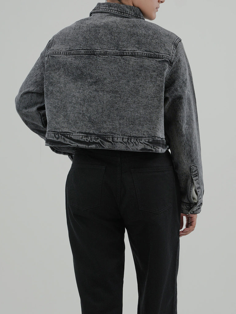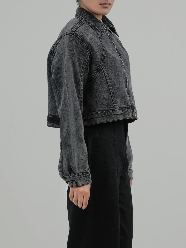 Add a trendy touch to your outfit with this women's cropped denim jacket. Featuring a short, modern cut and classic denim style, it’s perfect for layering over dresses or high-waisted bottoms.