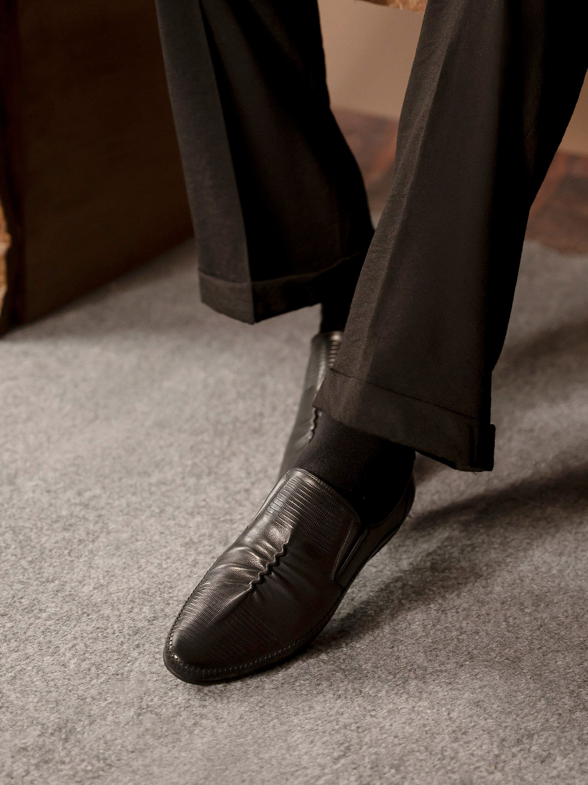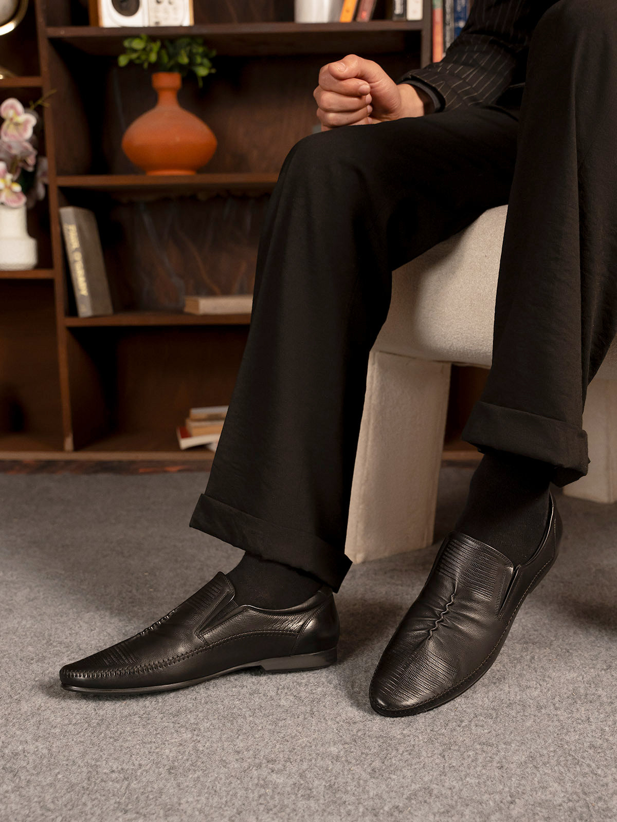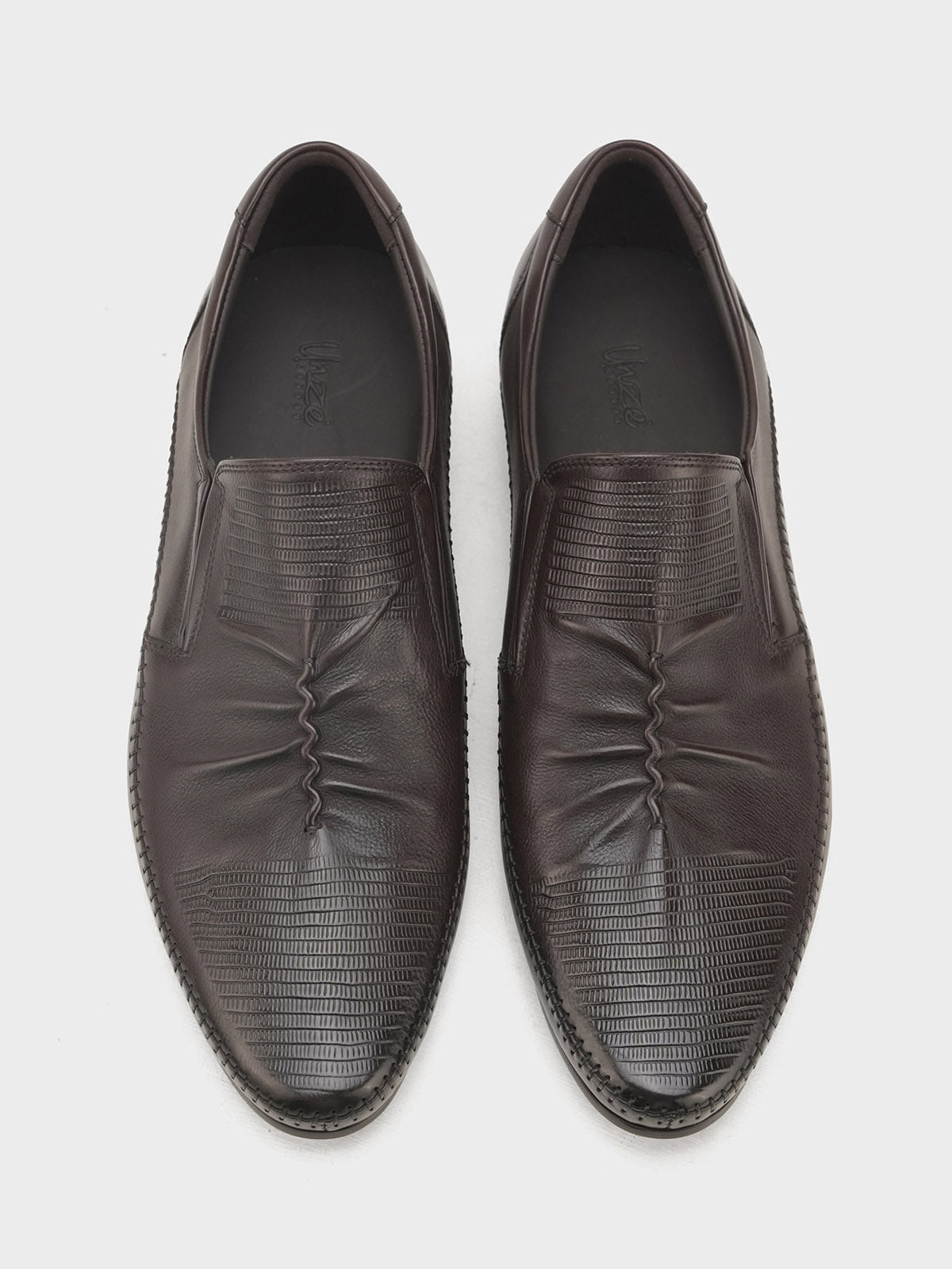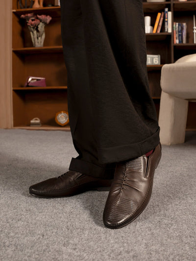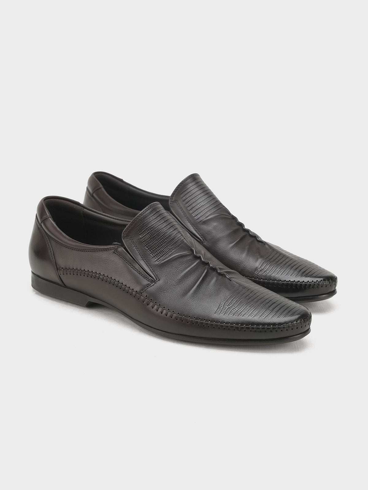 Upgrade your formal wardrobe with these men’s leather slip-on shoes in a distinctive design. Made from high-quality leather, they offer a sleek and modern look while ensuring maximum comfort with a cushioned insole. The easy slip-on design saves time without sacrificing style.
