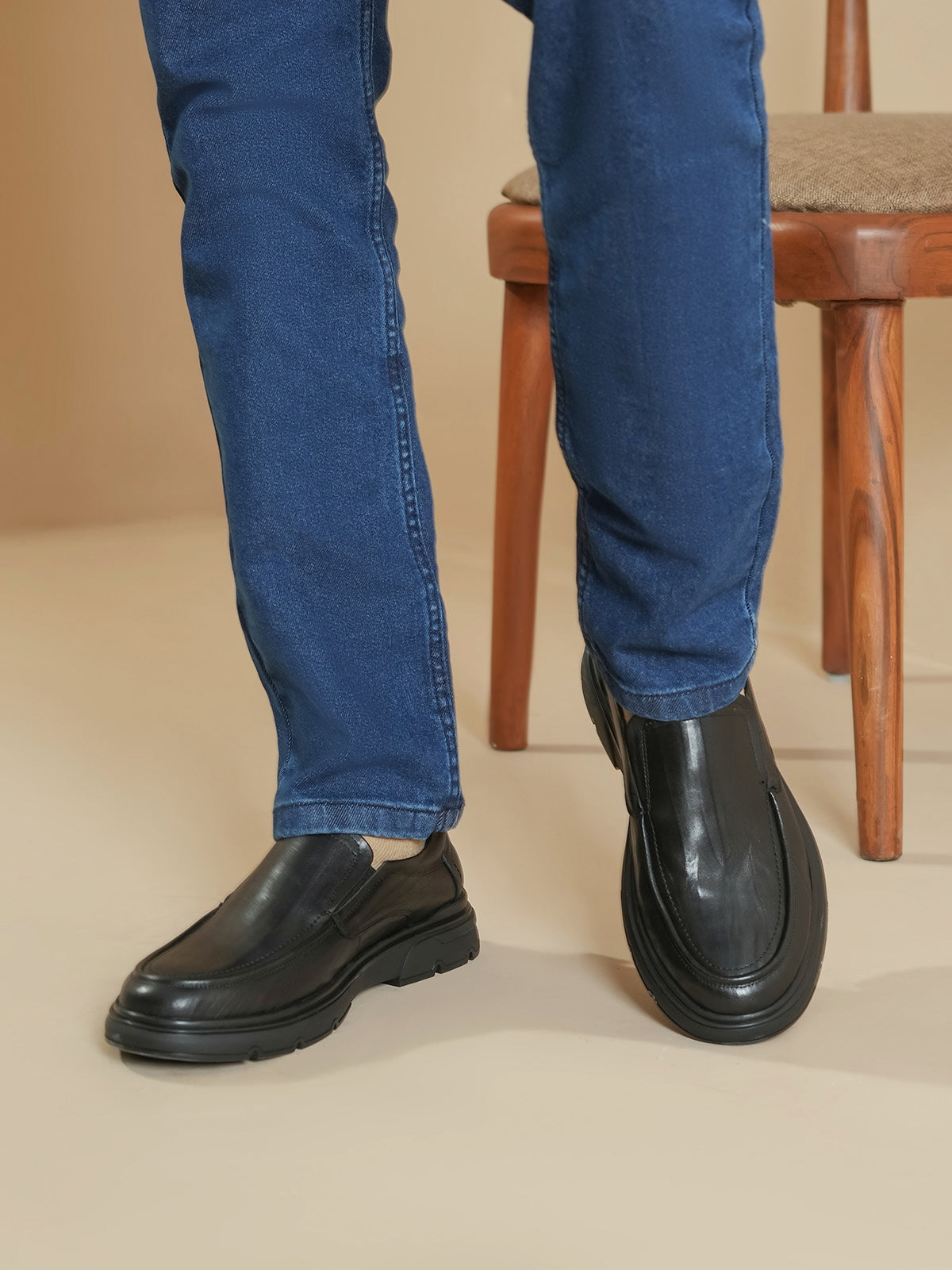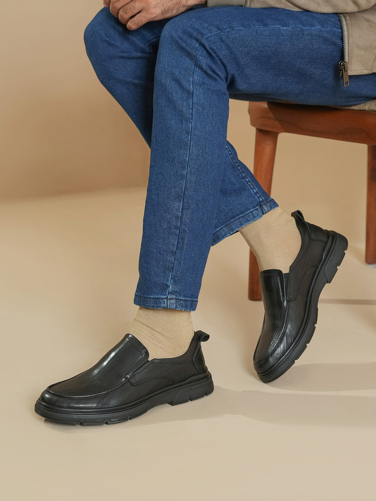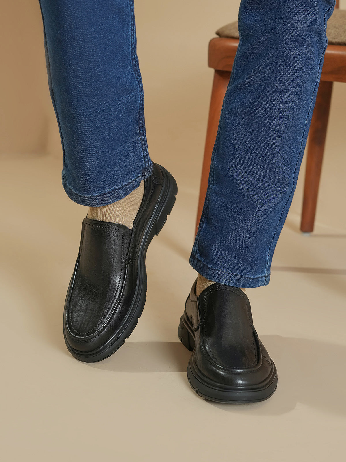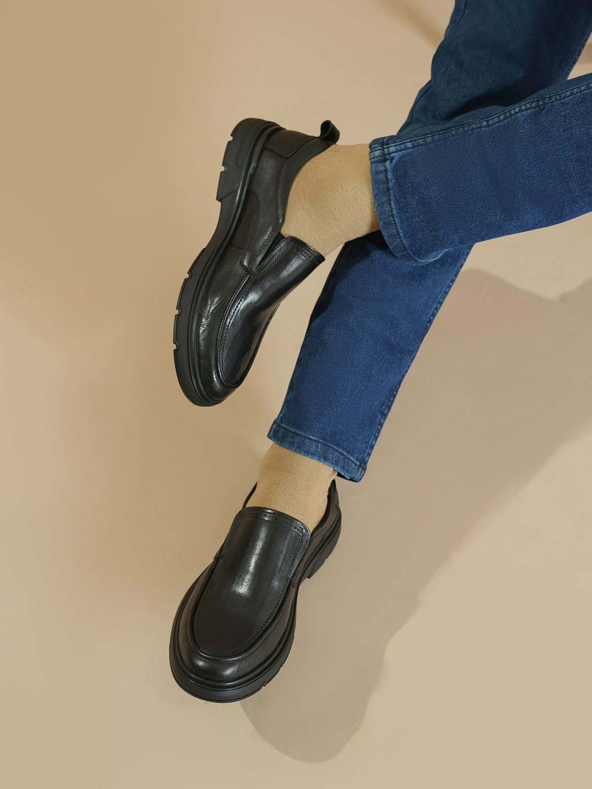 These men’s loafer leather slip-on shoes are easy to wear and perfect for any formal occasion. Made with soft, high-quality leather, they have a clean and classic look. The slip-on design makes them quick to put on, and the cushioned insole keeps your feet comfortable all day.
