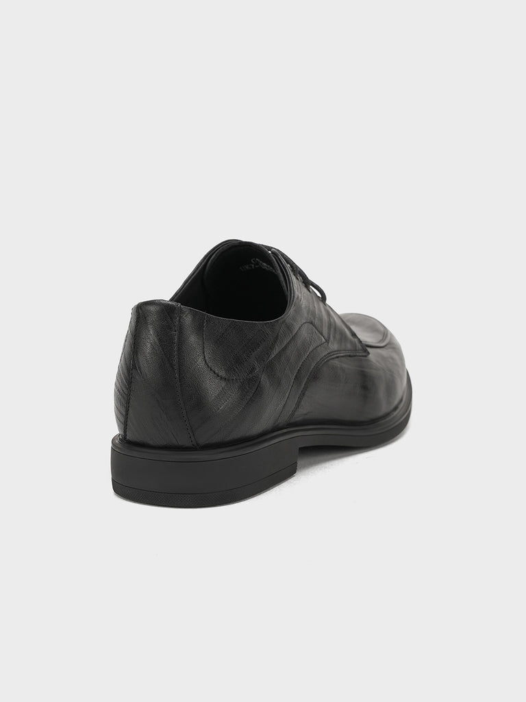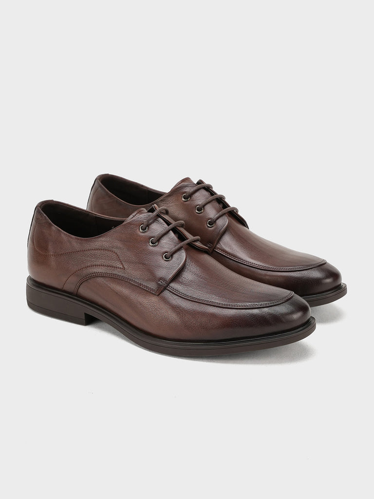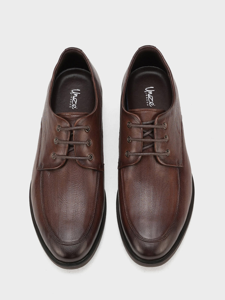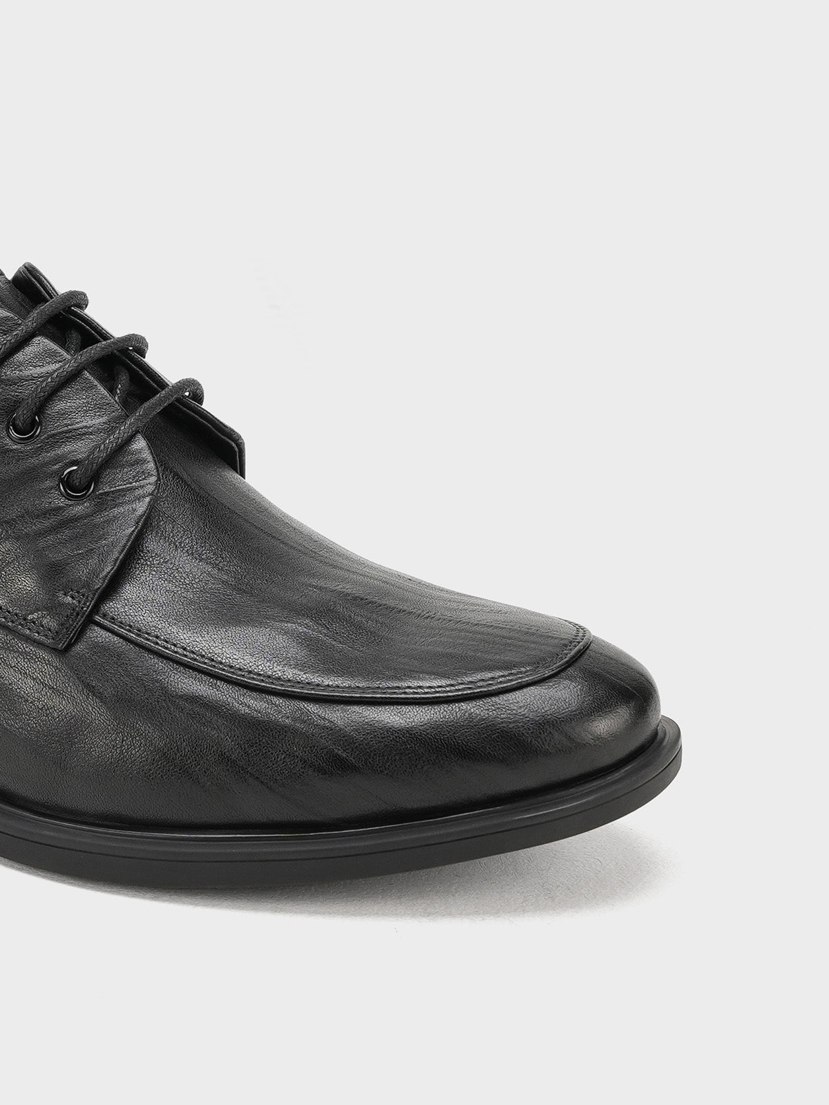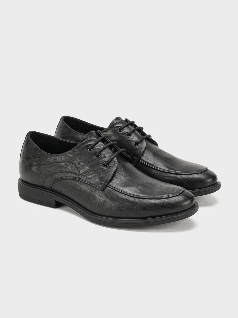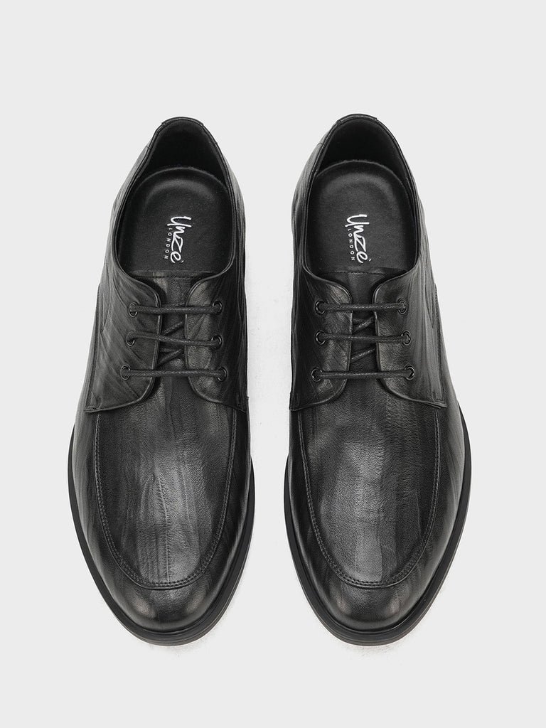 These lace-up men’s formal leather shoes feature a unique yet simple design, perfect for a clean and modern look. Crafted from smooth, high-quality leather, they offer a sleek shape with minimal stitching for a refined finish.
