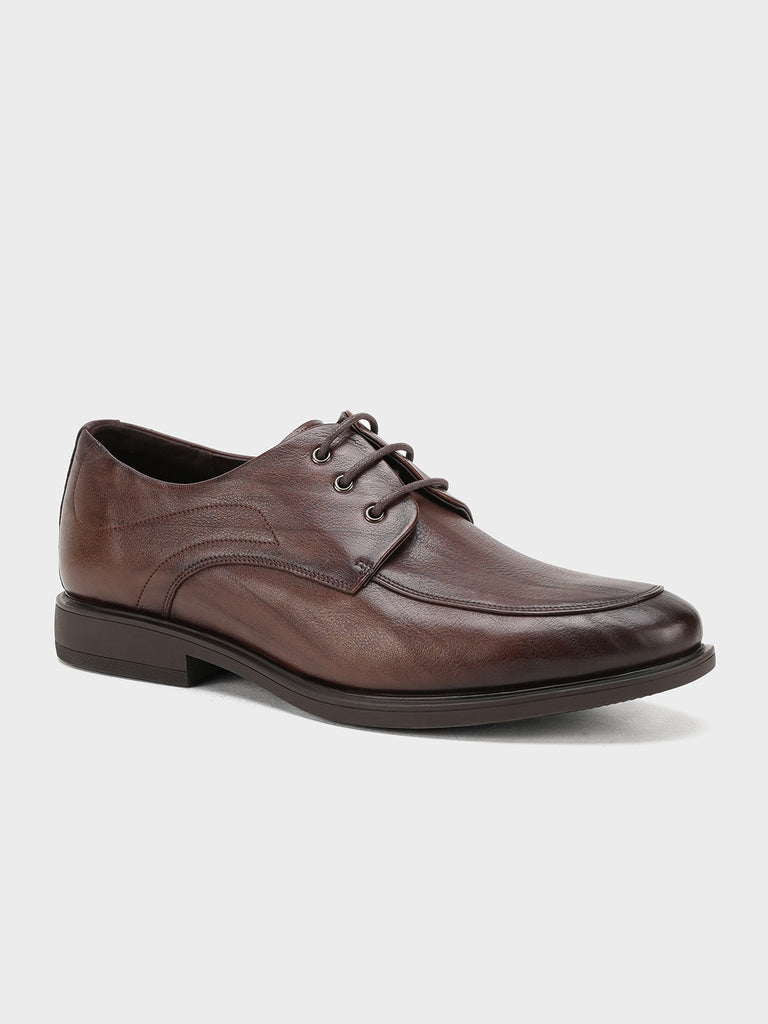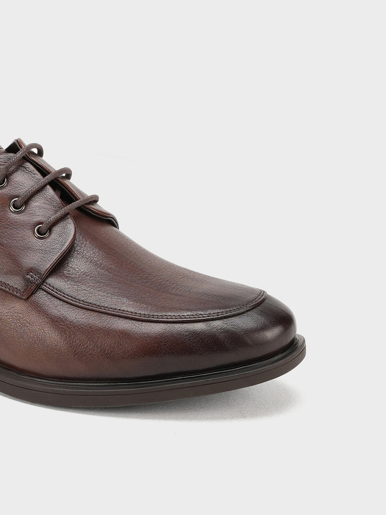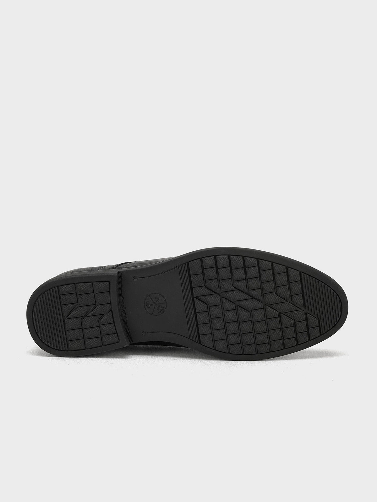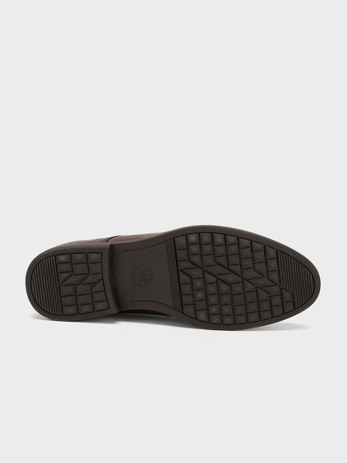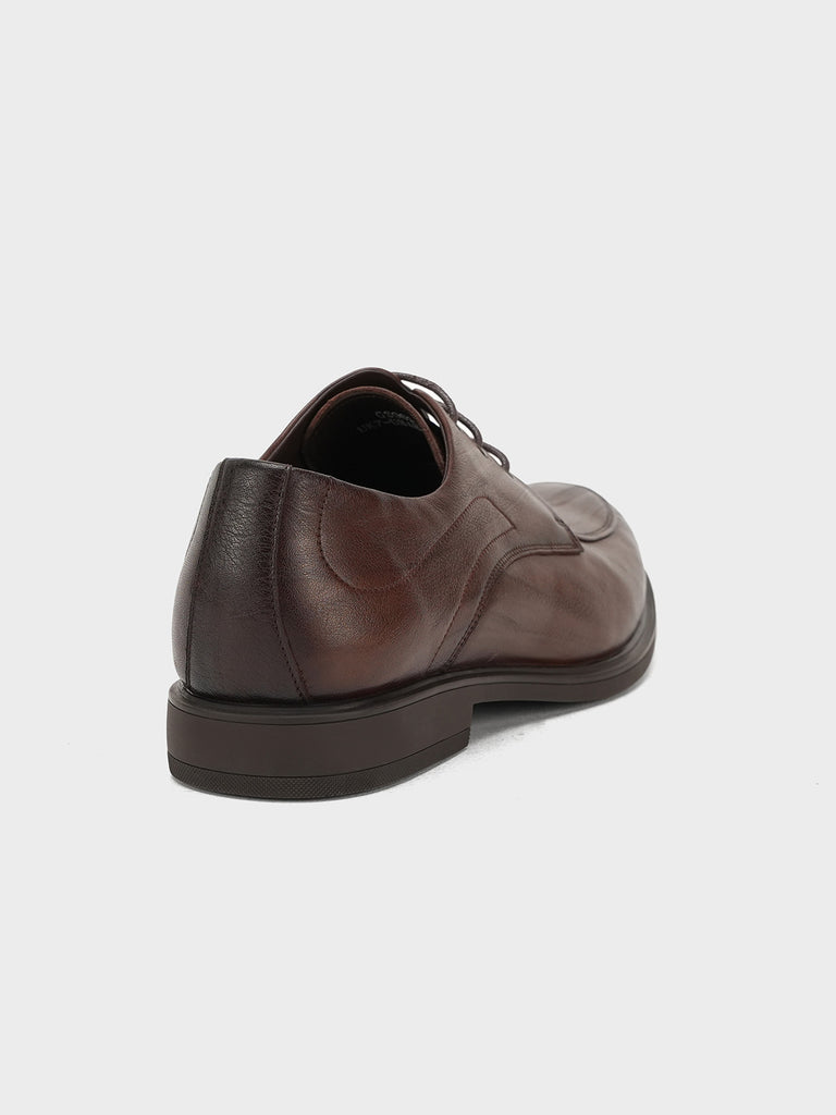 These lace-up men’s formal leather shoes feature a unique yet simple design, perfect for a clean and modern look. Crafted from smooth, high-quality leather, they offer a sleek shape with minimal stitching for a refined finish.