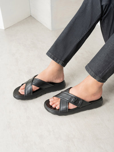 Keep your feet cool and comfortable with these breathable PU slide-on slippers, offering a cushioned insole for a relaxed fit. These comfy shoes are best for lounge wear or beach parties.