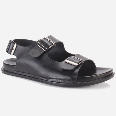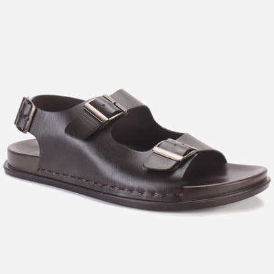 Step out with lot of comfort and confidence in these stunningly amazing summer leather sandals. This open-toe sandal features a sleek leather upper in a back strap design with buckled detailing on the top bar straps. Cushioned leather-covered footbed ensures all-day comfort. The durable rubber outsole with PU lining makes these sandals the perfect addition to your summer wardrobe.
