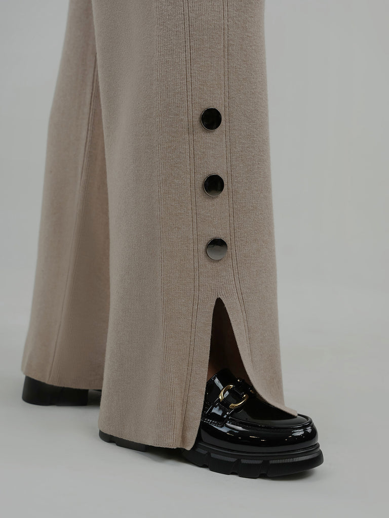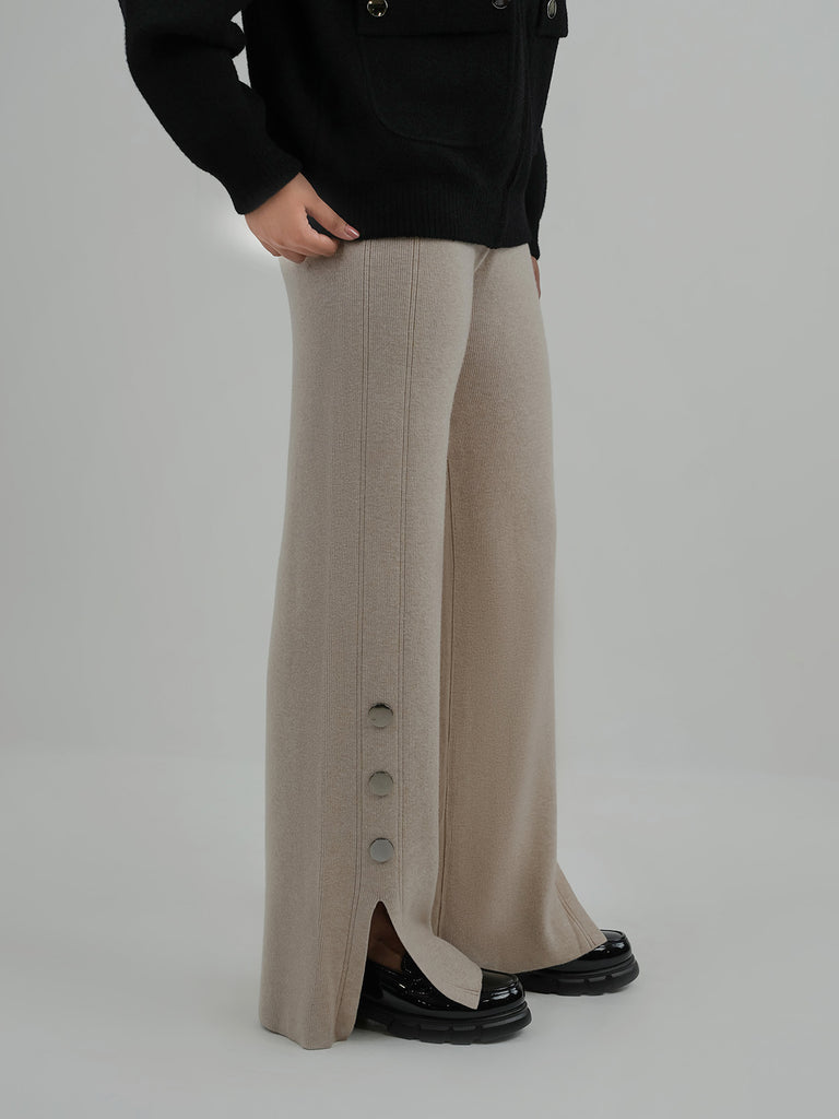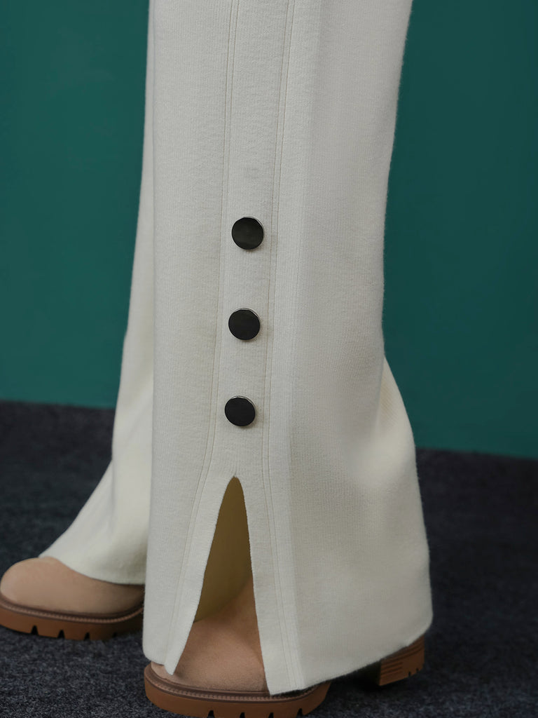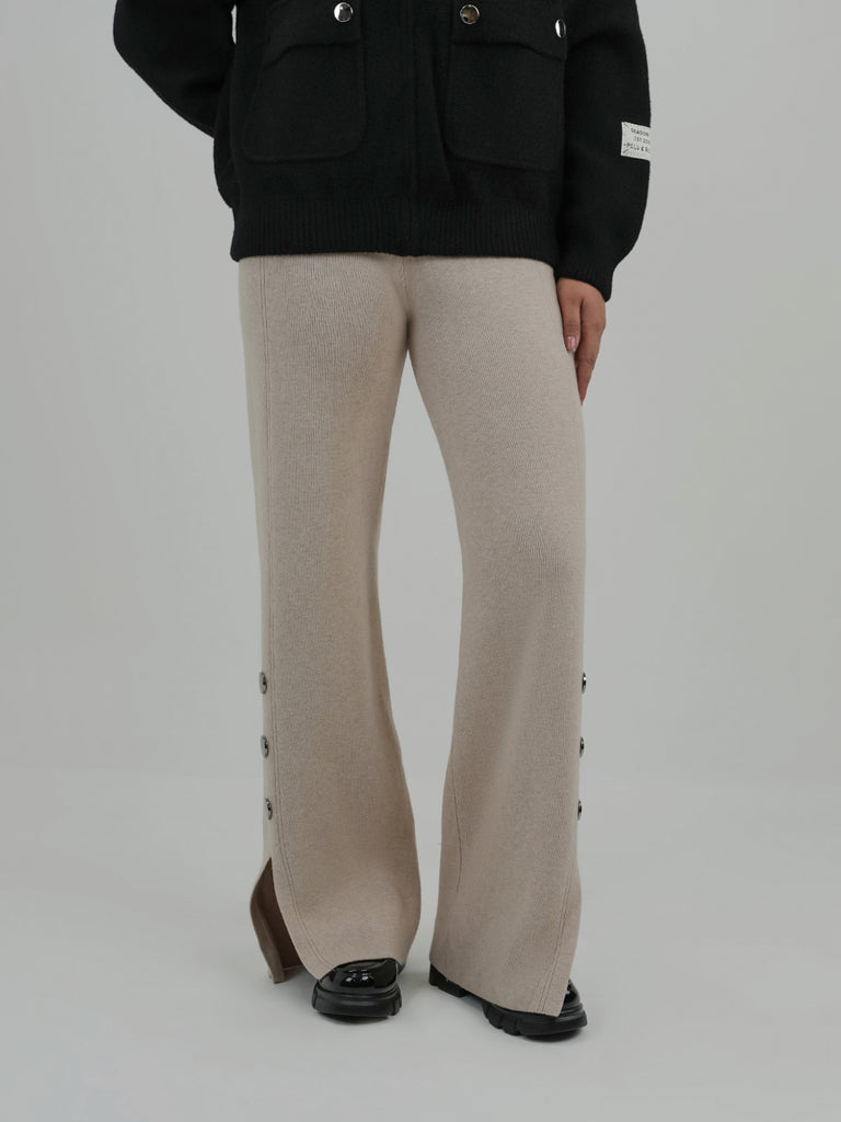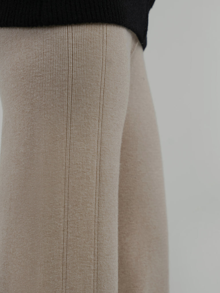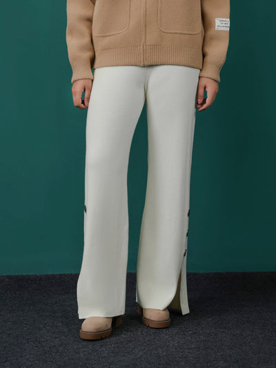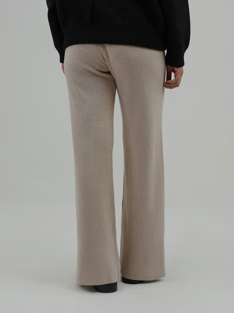 Elevate your everyday style with these chic cream-colored knitted trousers. Designed with a comfy elastic waistband and a straight-leg fit,Soft, cozy, and versatile—perfect for casual days or a relaxed, elegant look.