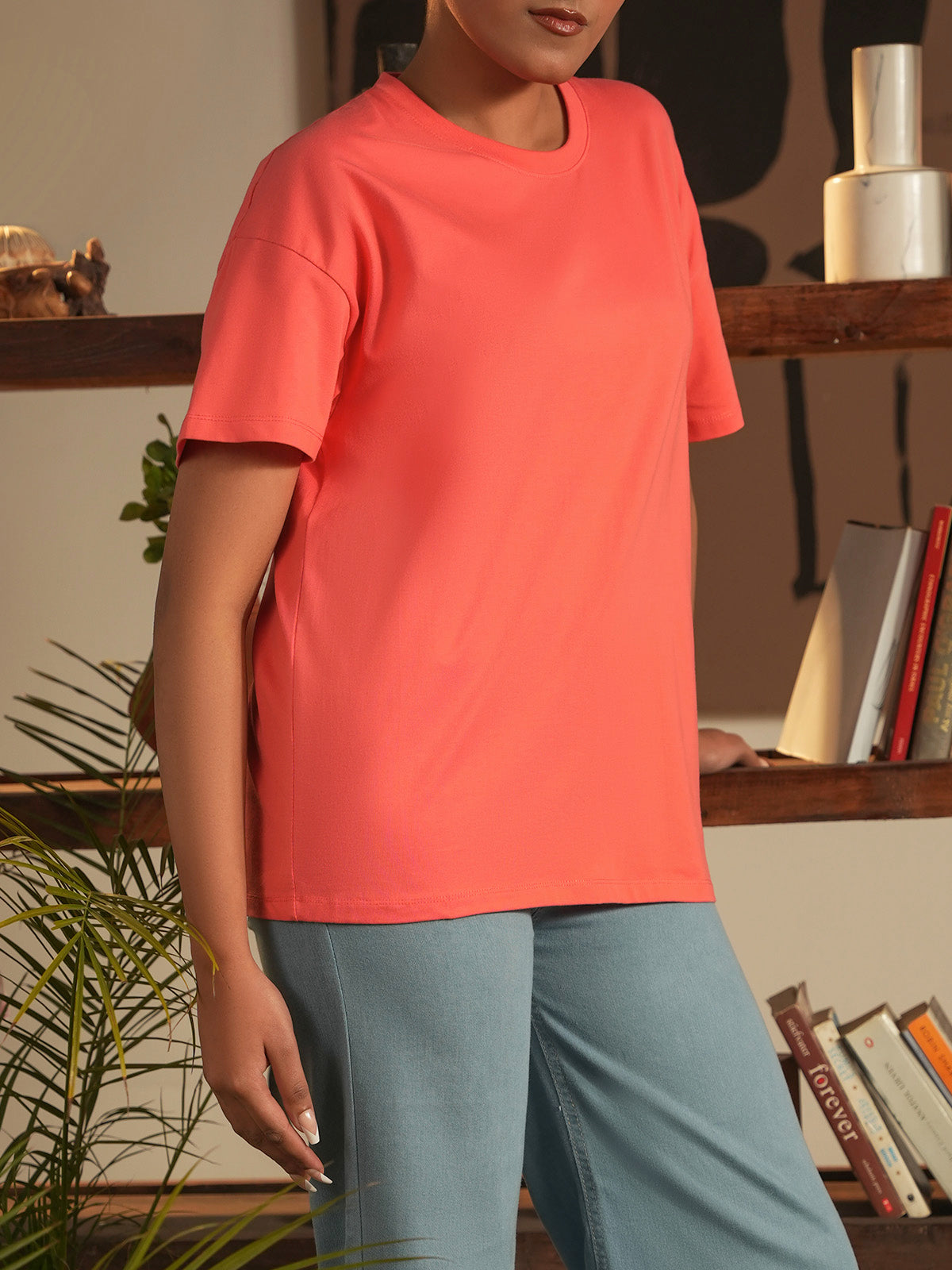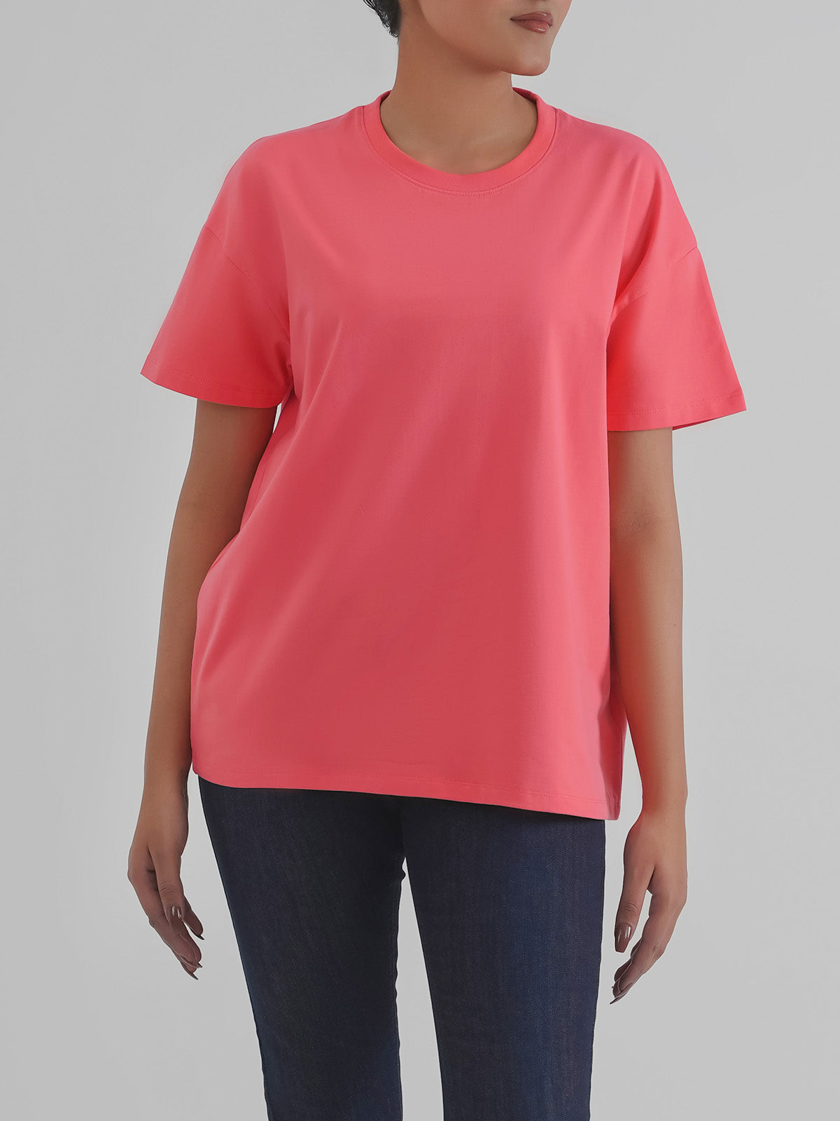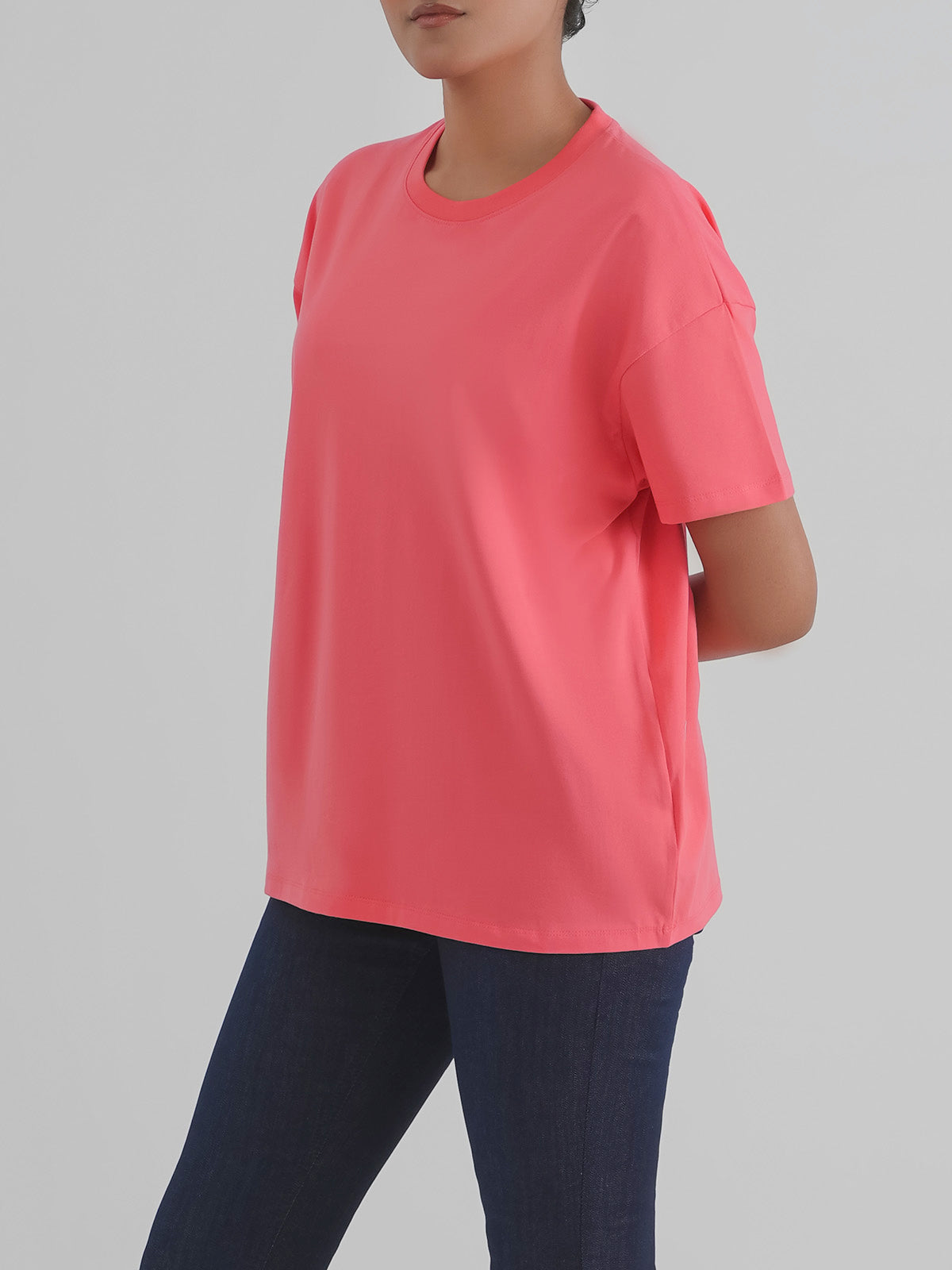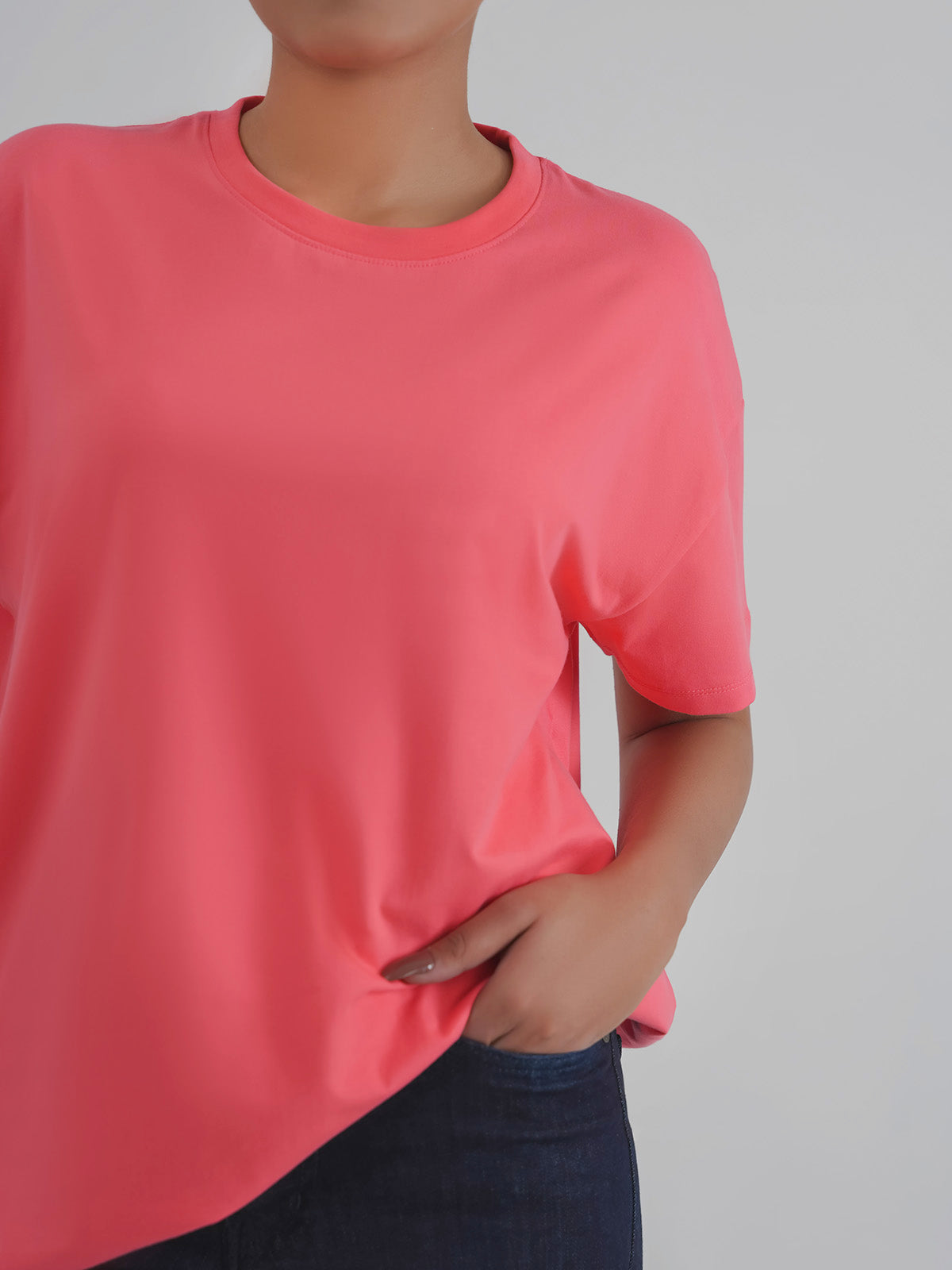 Stay comfortable and stylish with this women’s lycra jersey basic T-shirt. Featuring a relaxed drop shoulder and a solid color design, it offers a modern, effortless look. Made from soft, stretchable fabric.