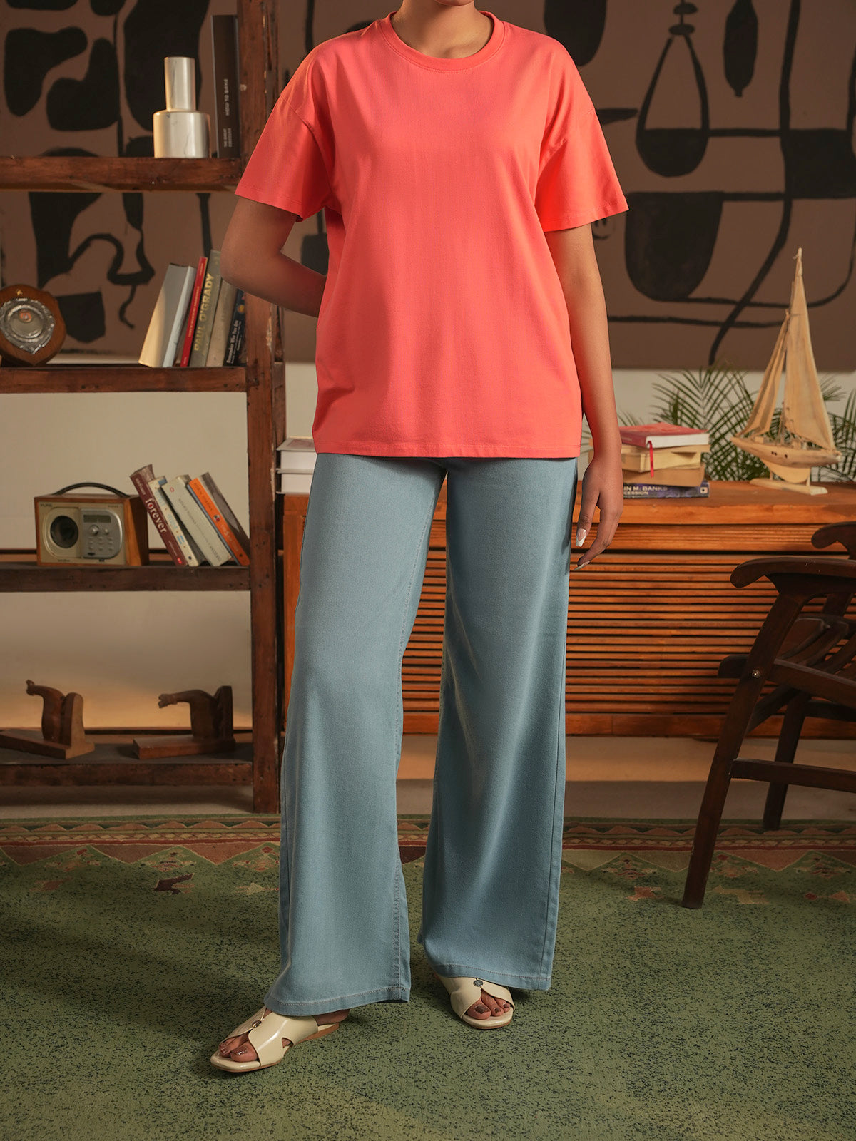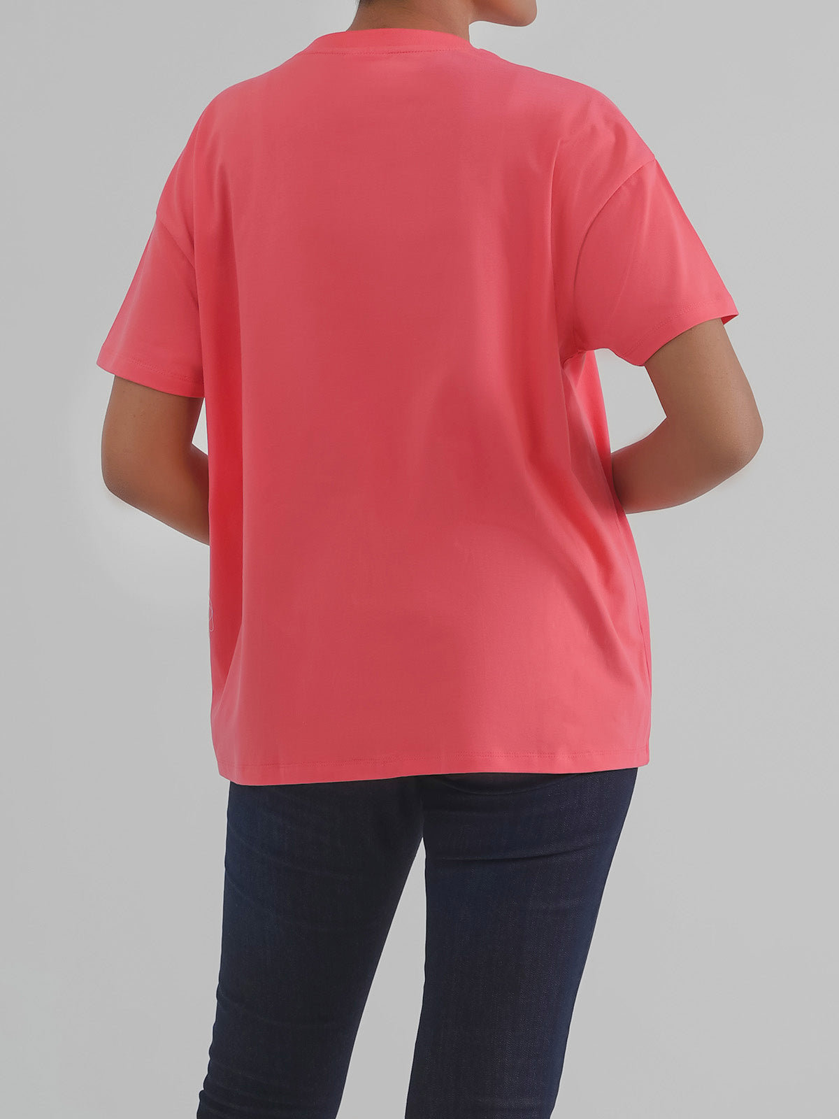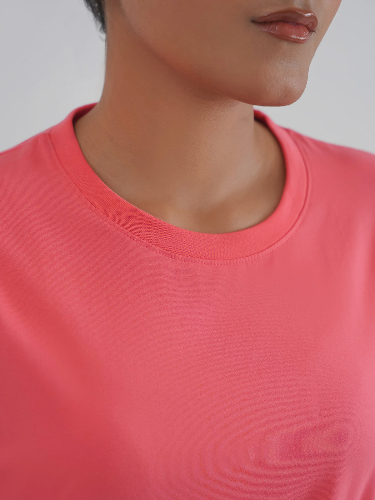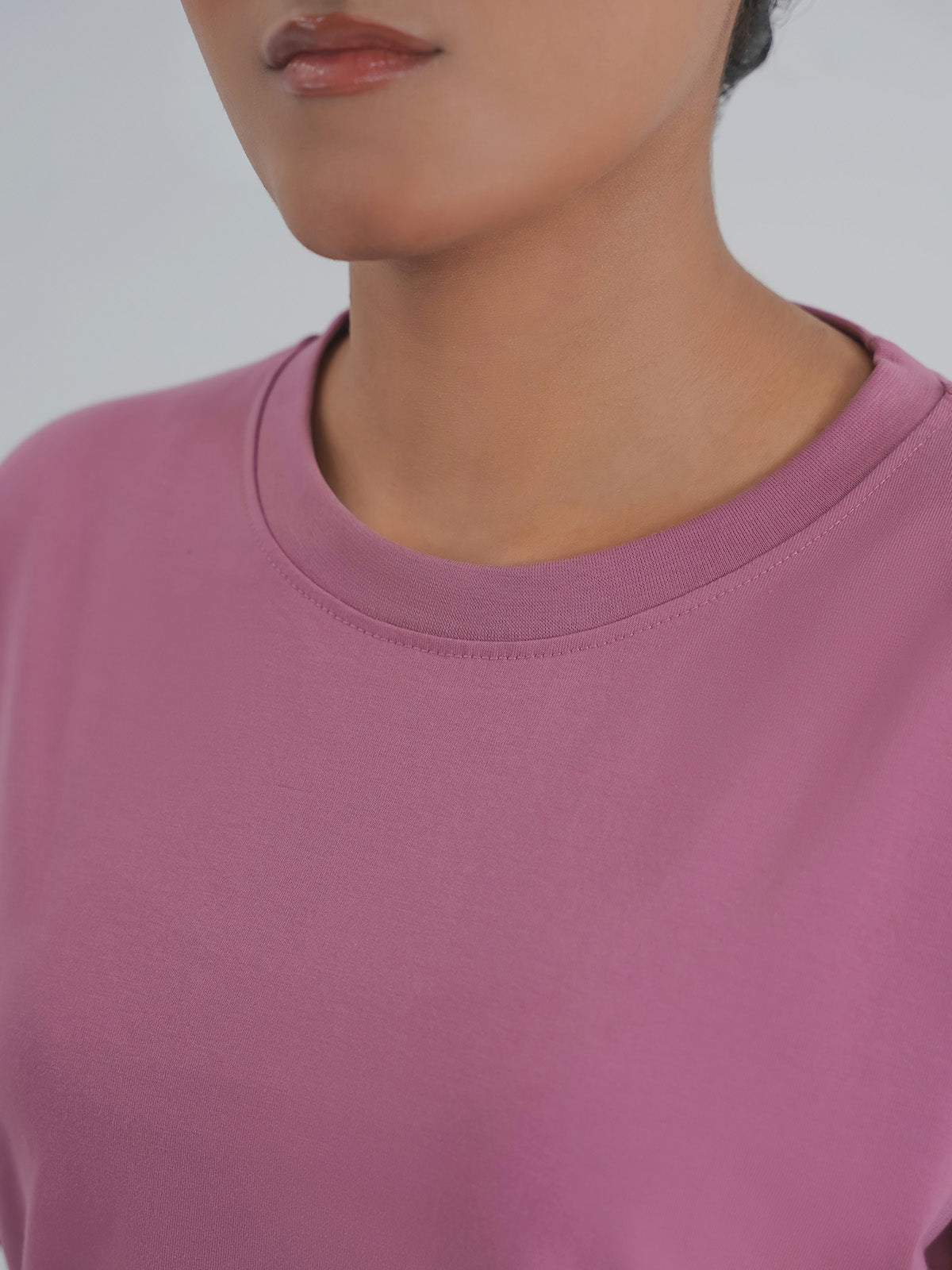 Stay comfortable and stylish with this women’s lycra jersey basic T-shirt. Featuring a relaxed drop shoulder and a solid color design, it offers a modern, effortless look. Made from soft, stretchable fabric.
