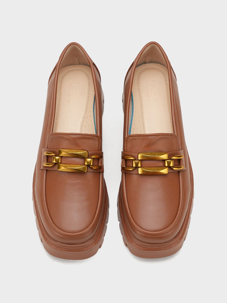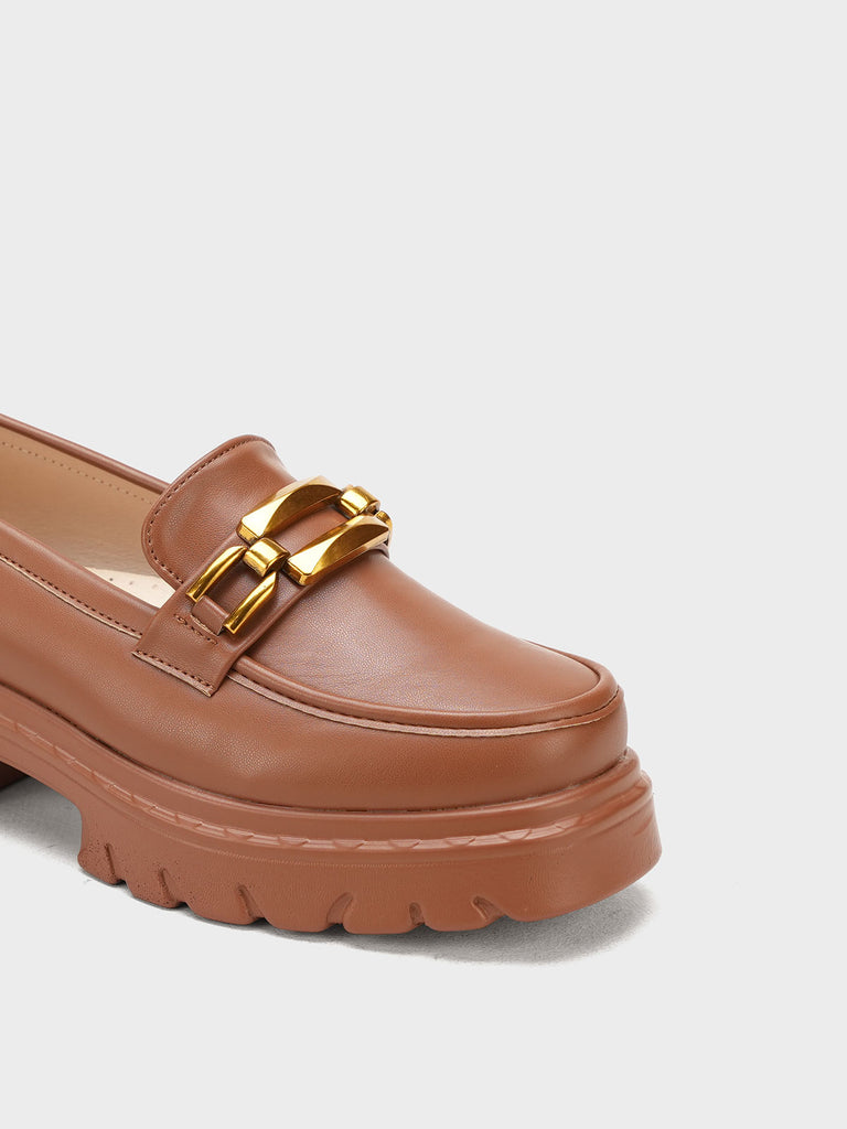 Elevate your everyday look with Unze London women loafers – crafted with a sleek finish and bold gold chain detail.