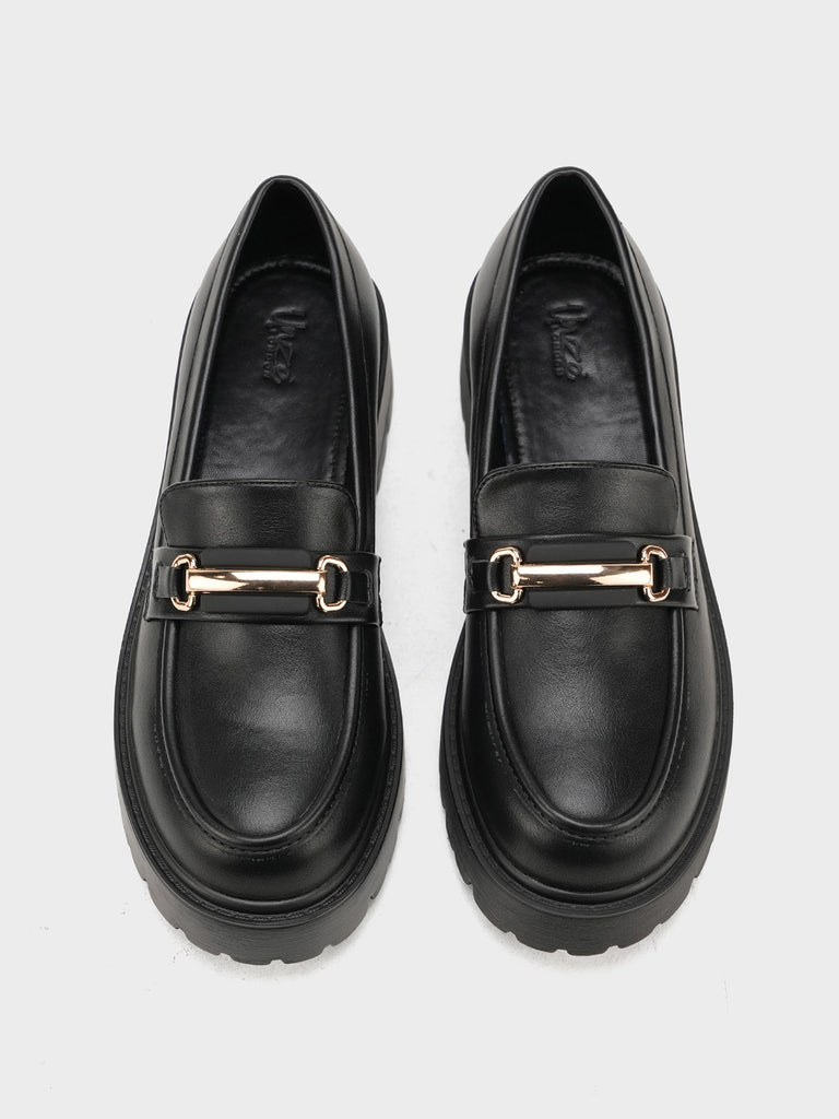 These moccasins are perfect for adding style to your everyday look. Made with a smooth croc-style design and gold buckle, they are easy to wear and very comfortable. Great for work, shopping, or casual outings.