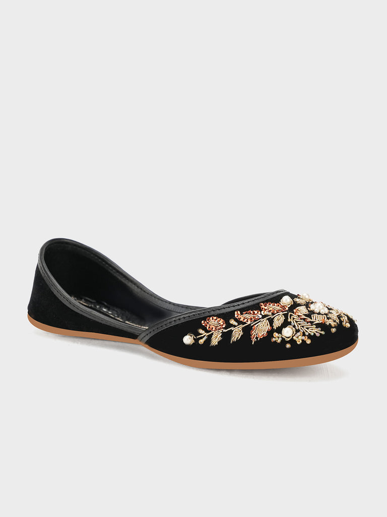 This women’s khussa is beautifully decorated with delicate embroidery, adding a touch of traditional charm to its classic design. Crafted with a soft inner lining and cushioned flat sole, it ensures lasting comfort for everyday wear. Perfect for festive occasions or casual styling.