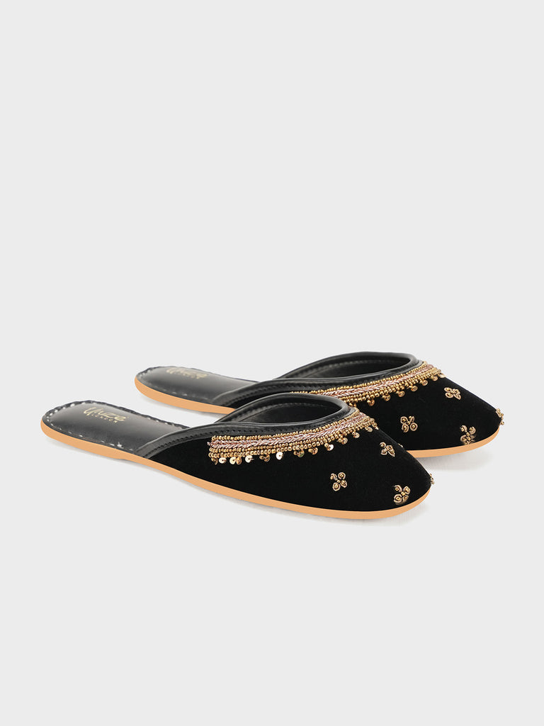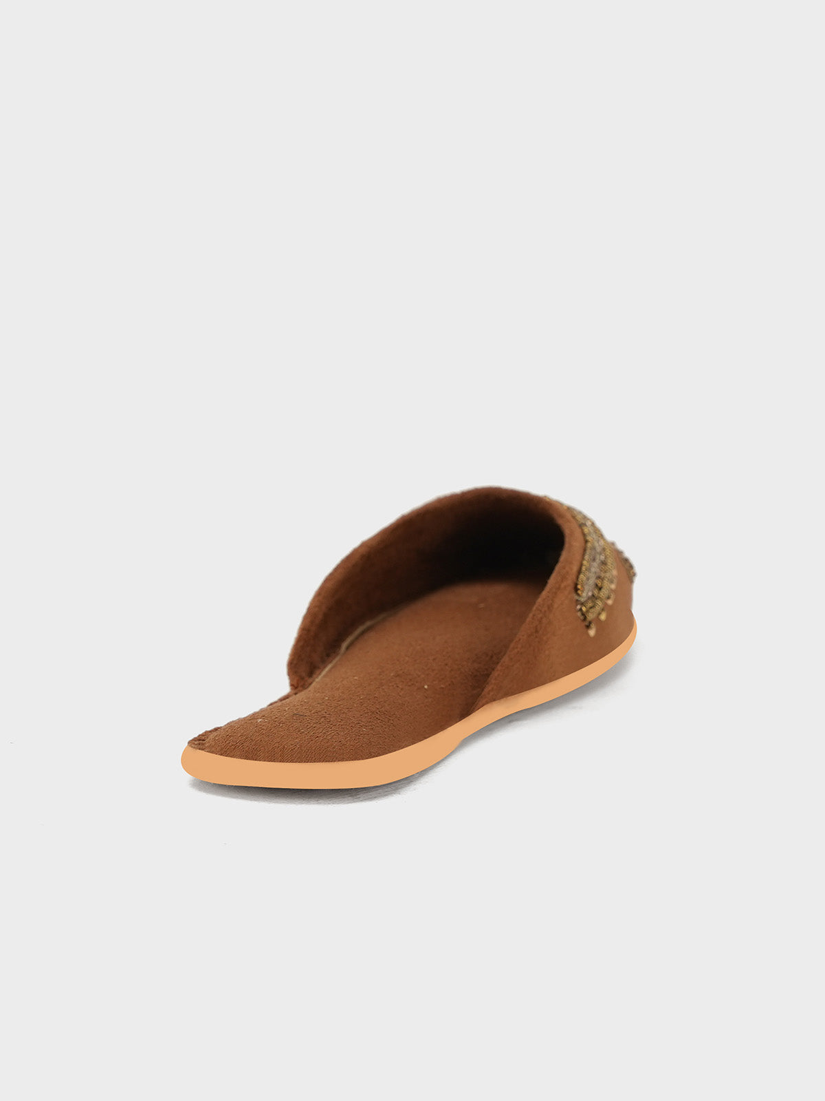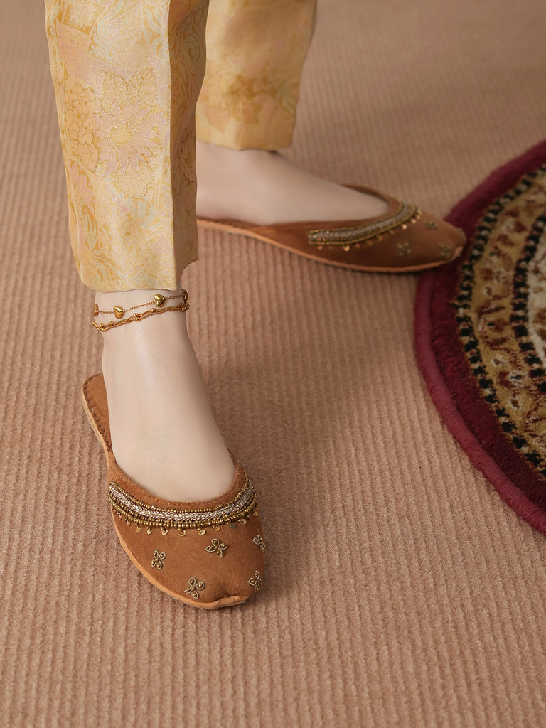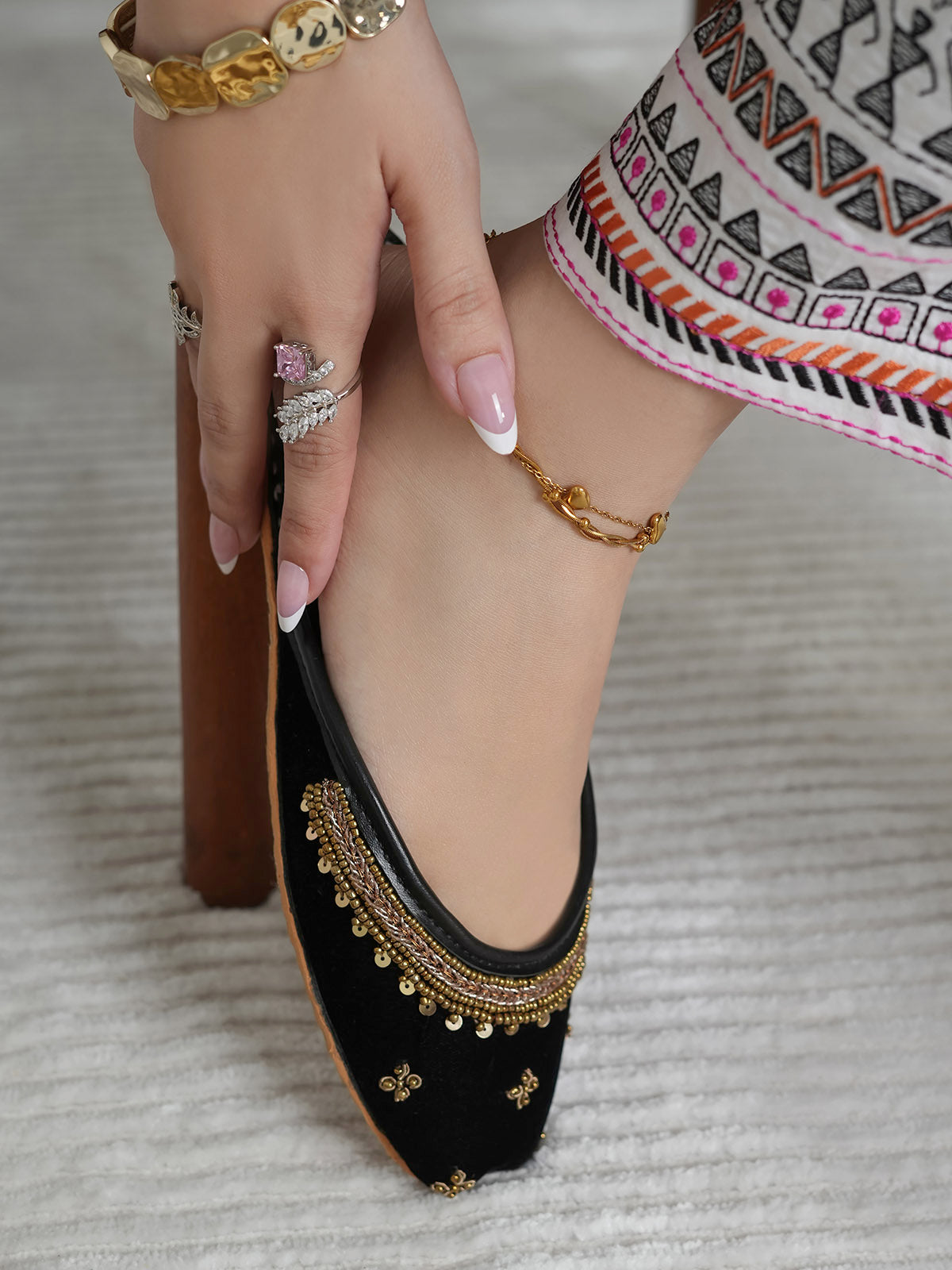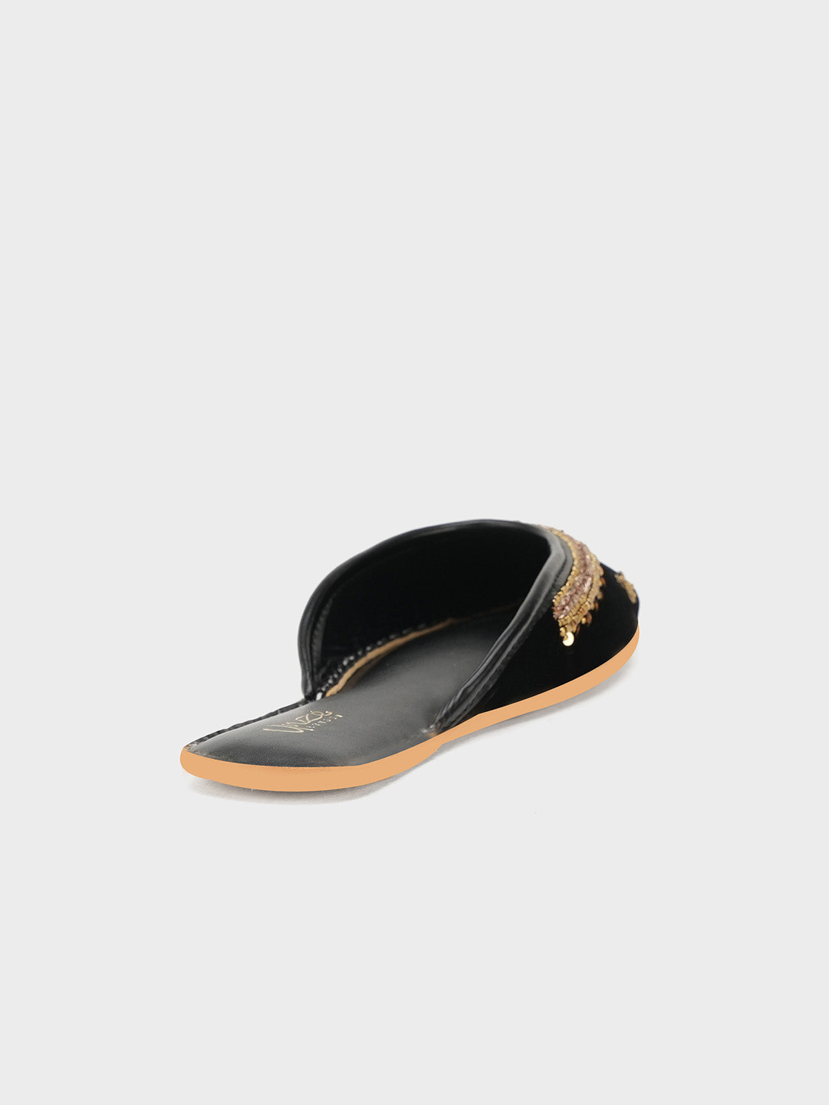 This women’s khussa is a backless, easy-to-wear design crafted for both comfort and elegance. Beautifully embellished with intricate detailing, it adds a touch of sparkle and tradition to any outfit.