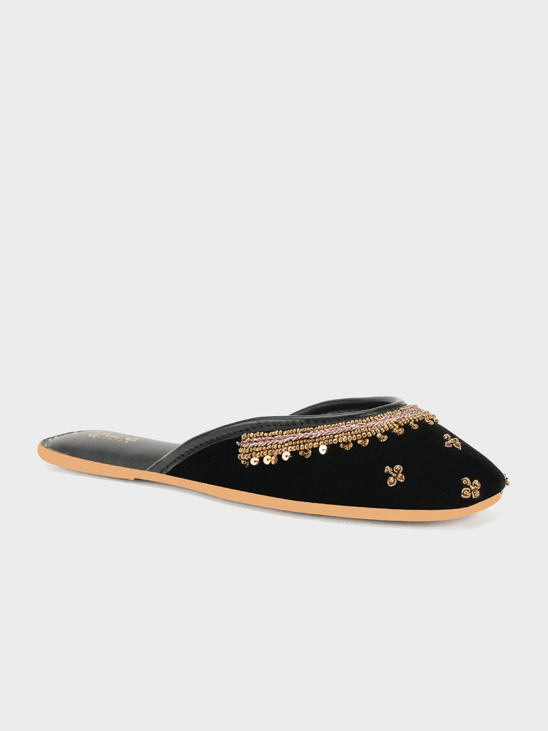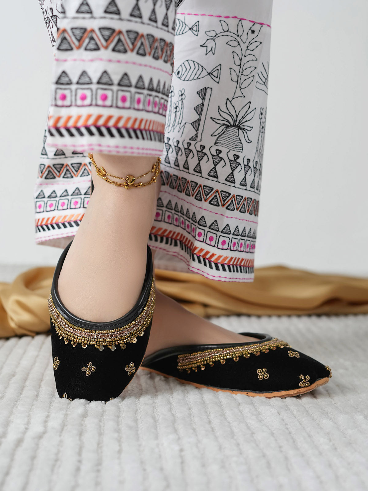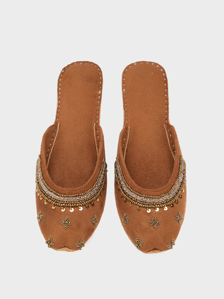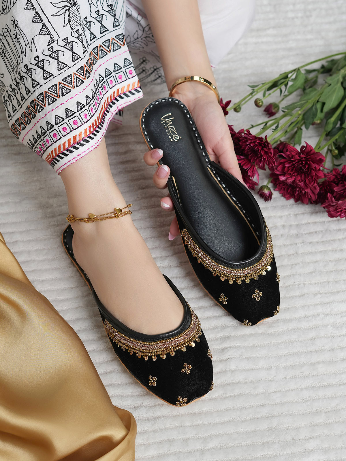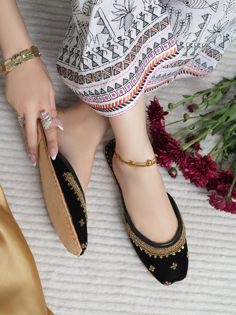 This women’s khussa is a backless, easy-to-wear design crafted for both comfort and elegance. Beautifully embellished with intricate detailing, it adds a touch of sparkle and tradition to any outfit.