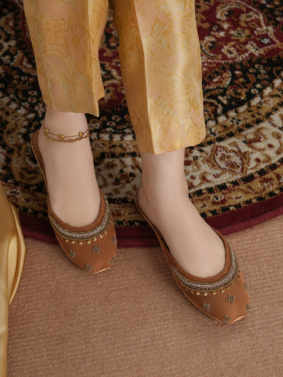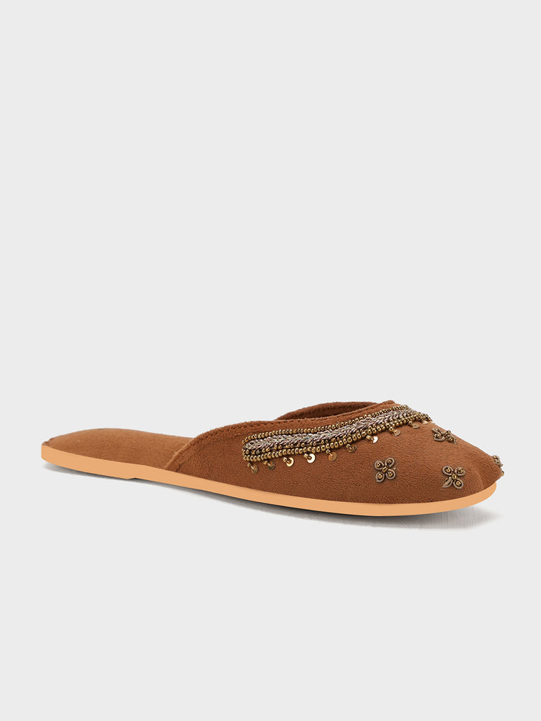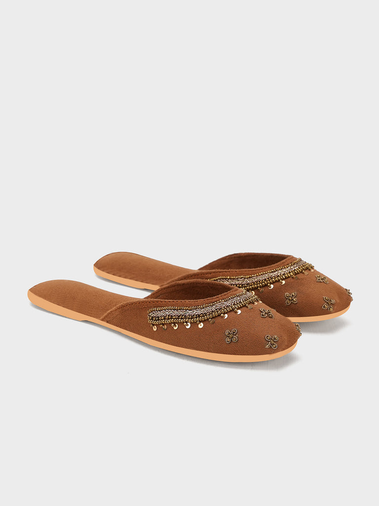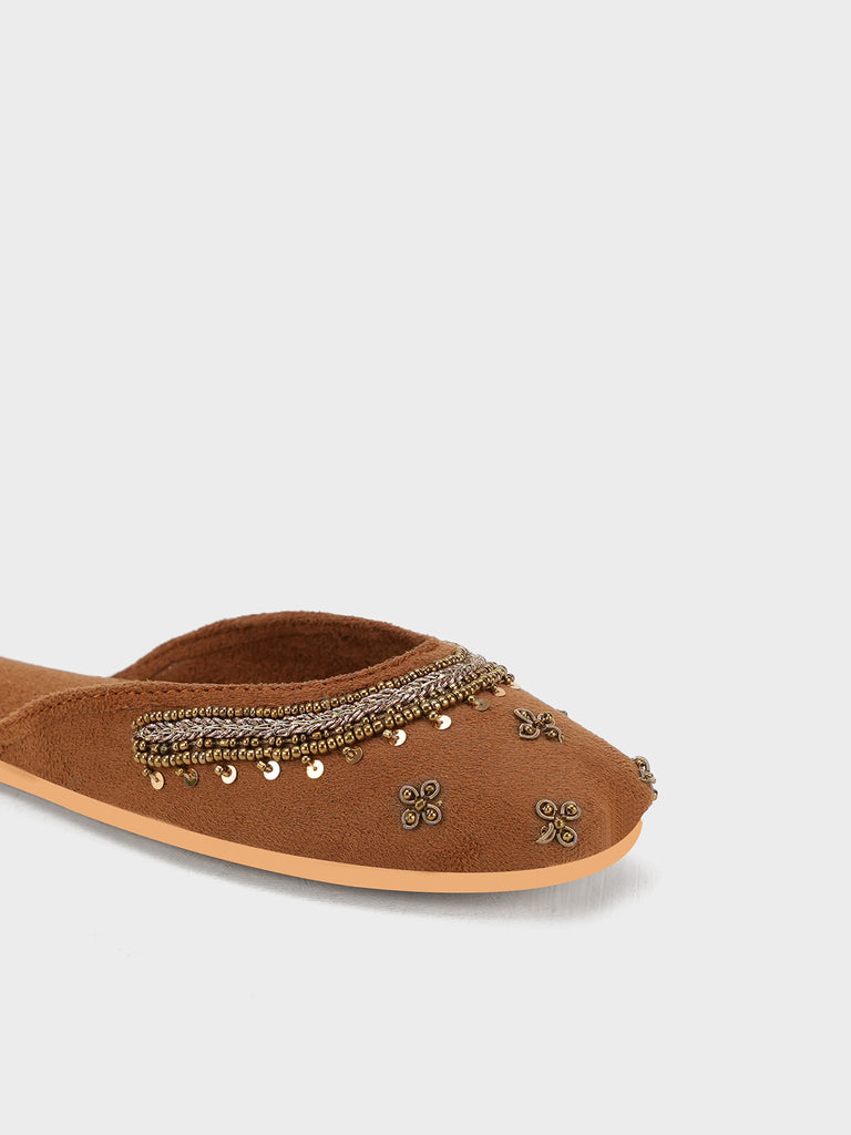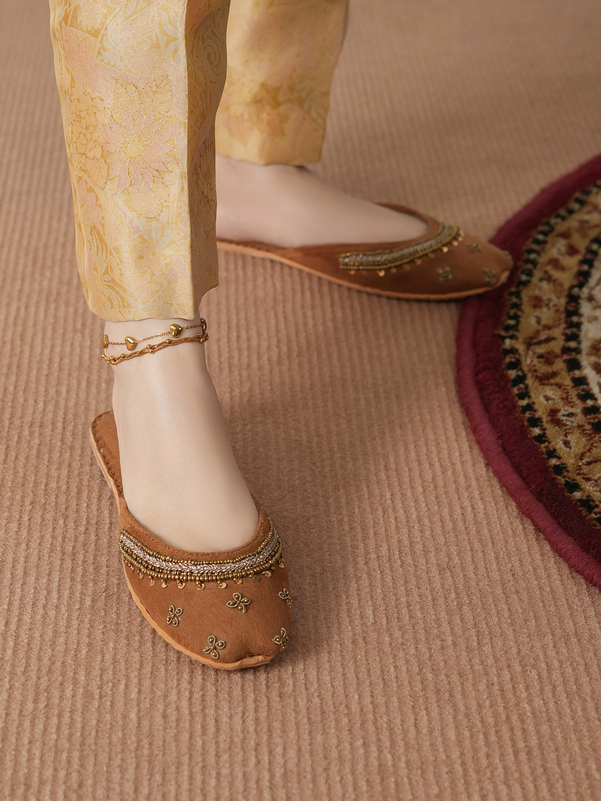 This women’s khussa is a backless, easy-to-wear design crafted for both comfort and elegance. Beautifully embellished with intricate detailing, it adds a touch of sparkle and tradition to any outfit.