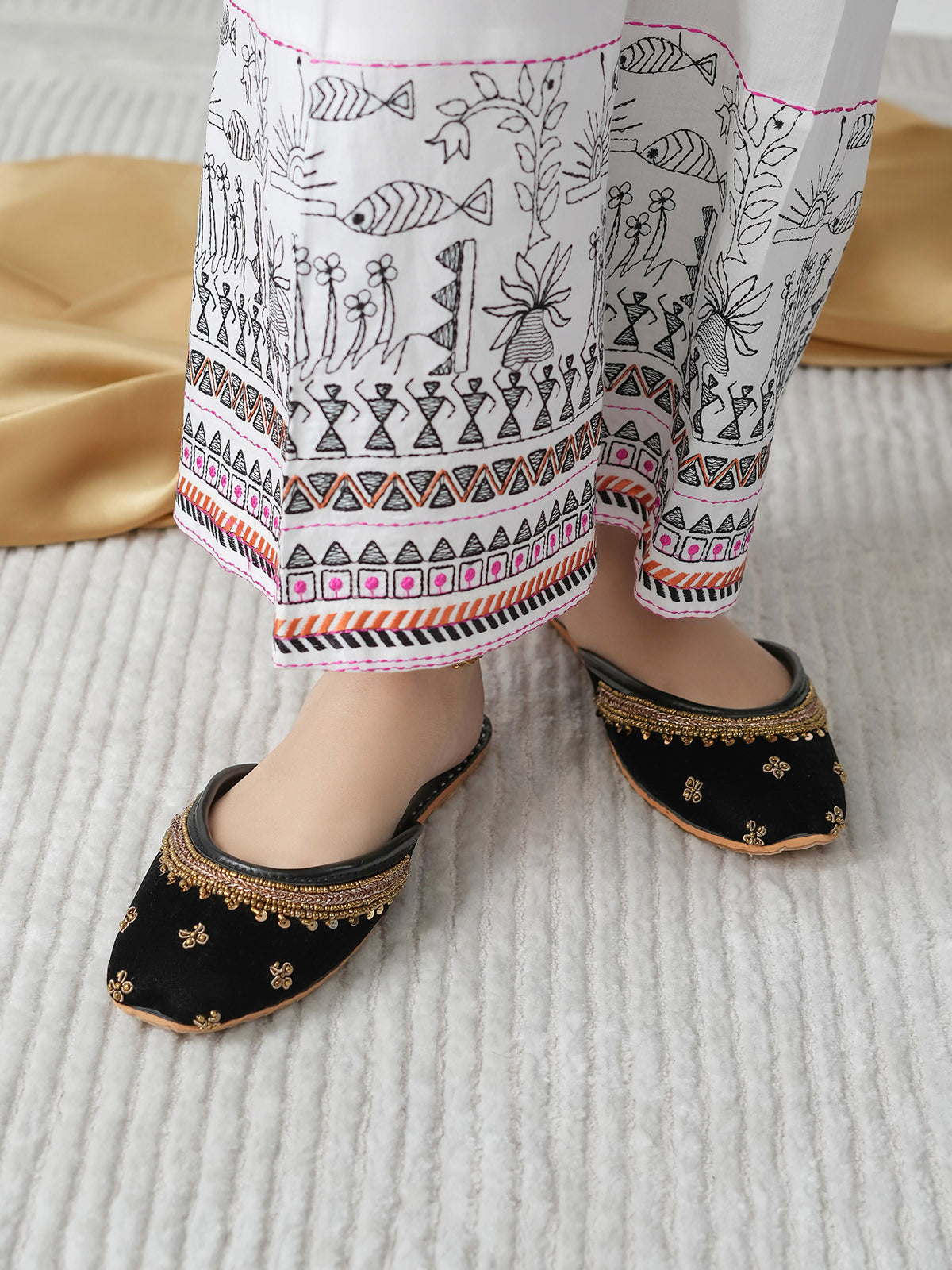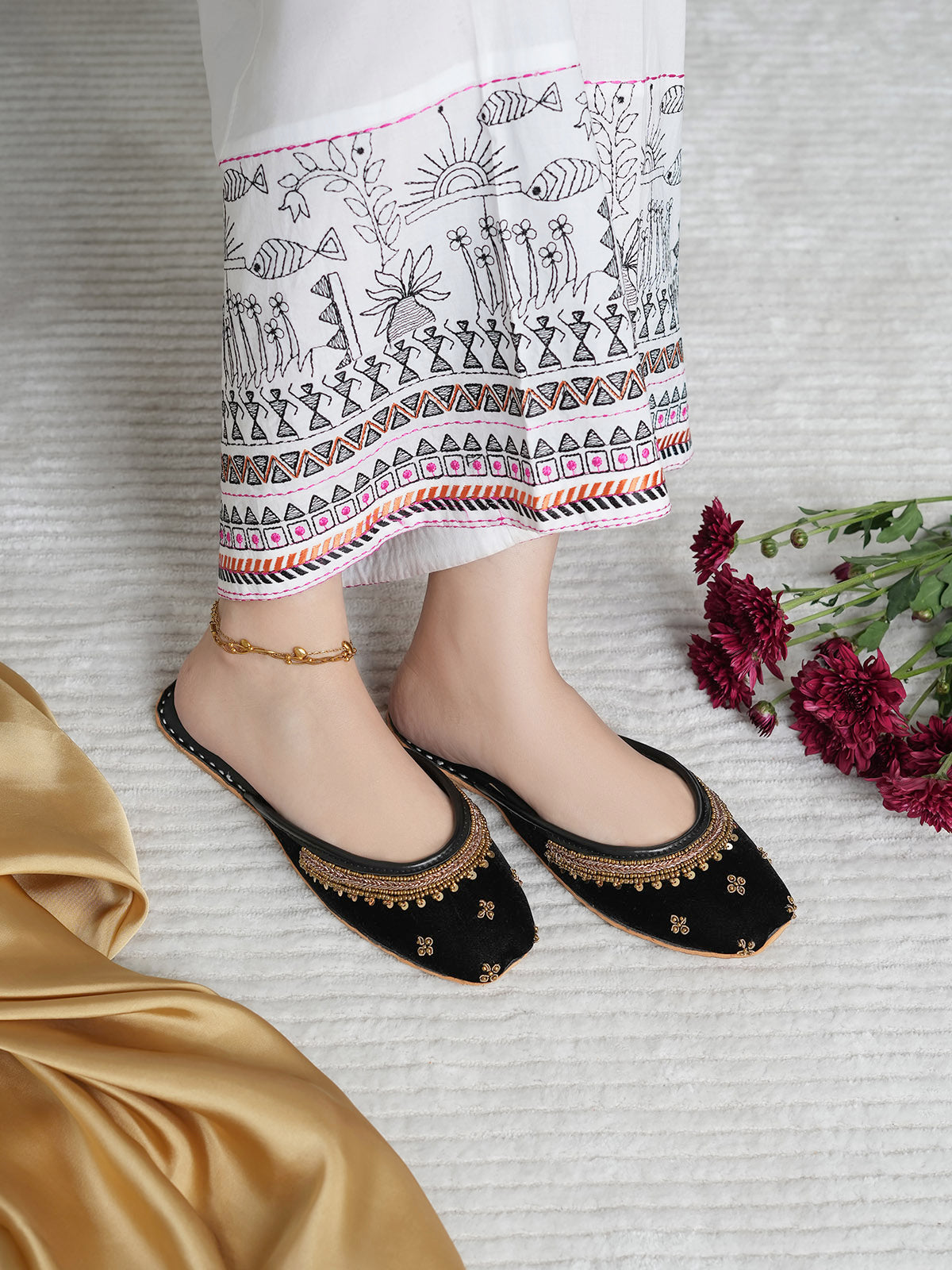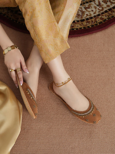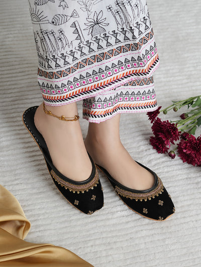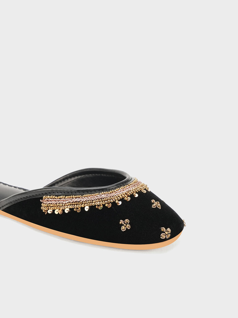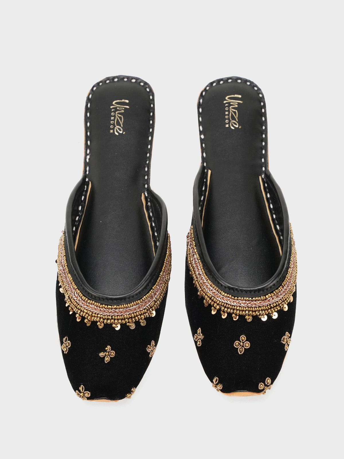 This women’s khussa is a backless, easy-to-wear design crafted for both comfort and elegance. Beautifully embellished with intricate detailing, it adds a touch of sparkle and tradition to any outfit.