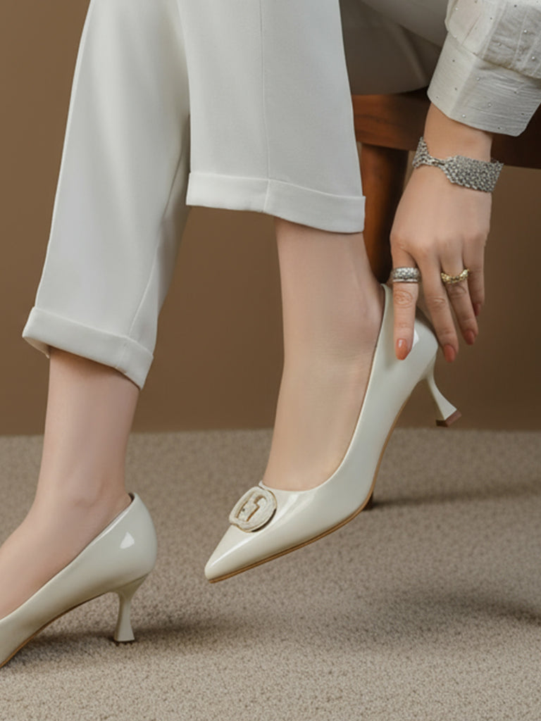 Add a touch of elegance to your outfit with these women’s heel court shoes featuring a stylish buckle on the upper. The sleek closed-toe design and mid-height heel offer a perfect balance of style and comfort.