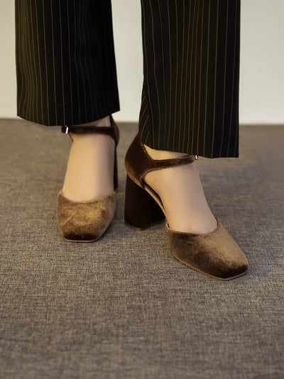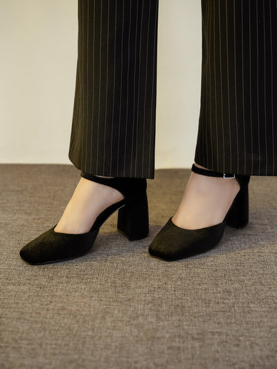 Step into retro-chic style with these chunky heel shoes, designed with a rounded toe for a softer, elegant look. The somfy, secured by a buckle, and reinforced back counter provide a secure and comfortable fit. The sturdy chunky heel ensures support and balance, making these sandals ideal for long days or nights out.