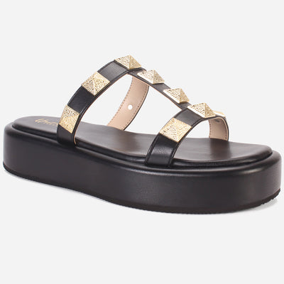 Our collection boasts a chic and understated style that is sure to turn heads. One of our standout designs features an edgy pyramid-style buckle pattern, while the wedge heel on all of our shoes offers both comfort and height. Our easy slip-on construction comes complete with T-bar straps and an open-toe silhouette, making them perfect for any occasion. The upper sole and lining are crafted from high-quality PU, ensuring maximum comfort for everyday use.